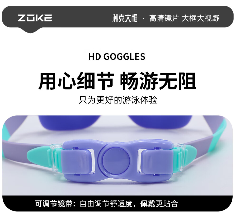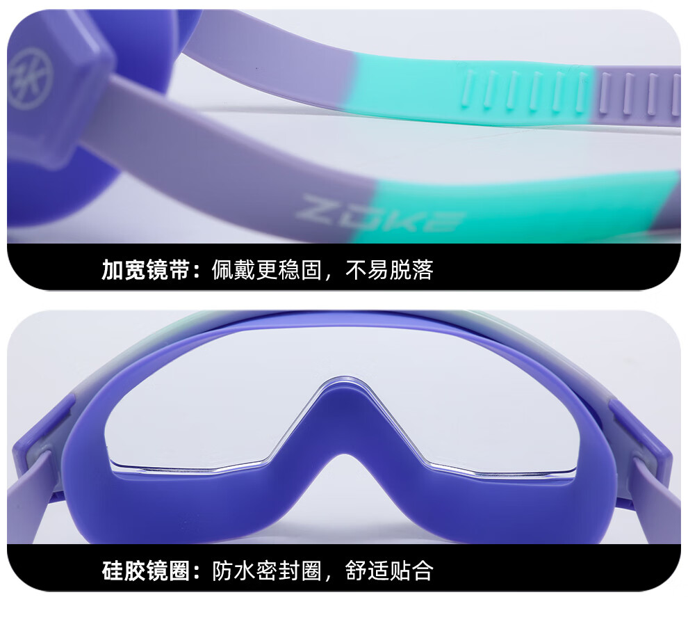 Zhouke children's swimming goggles for boys and girls flat waterproof and anti-fog HD large frame comfortable and fashionable adjustable training swimming goggles purple-blue-green gradient 624502101-5