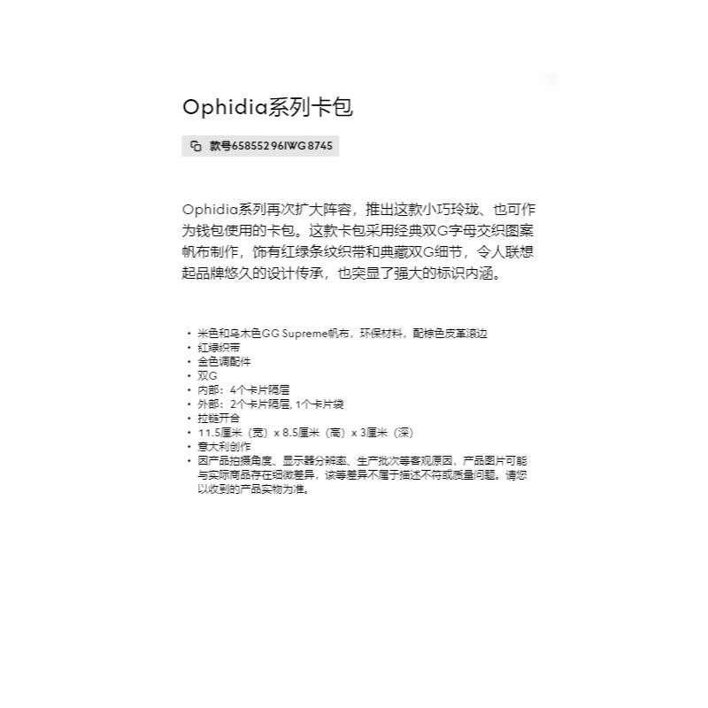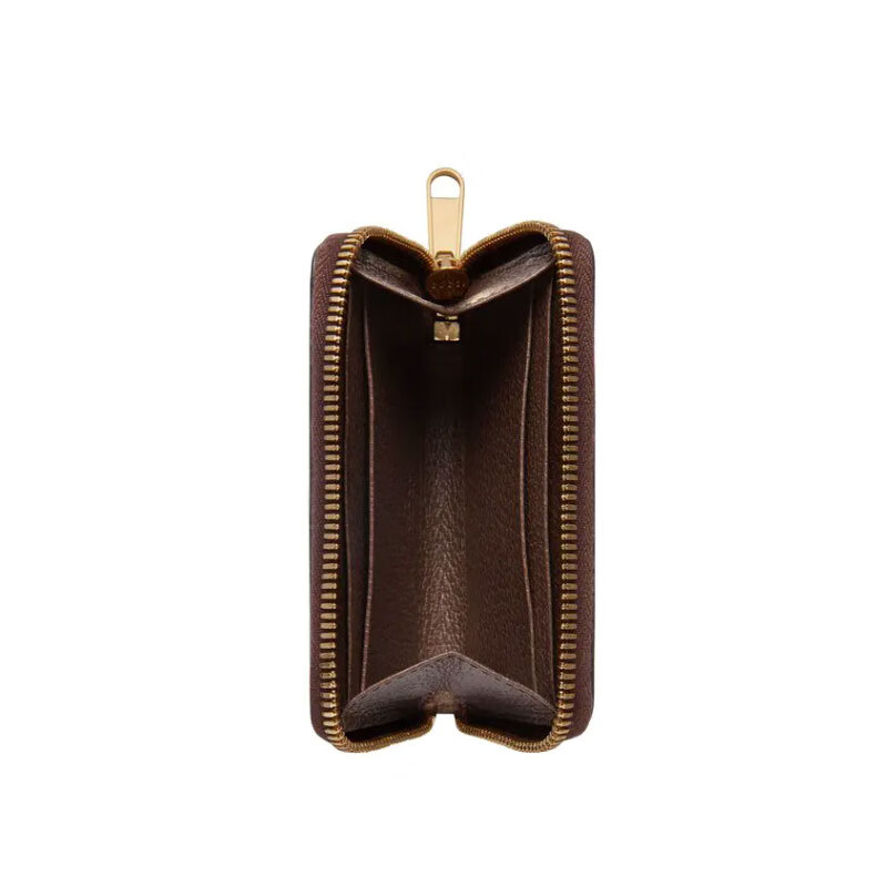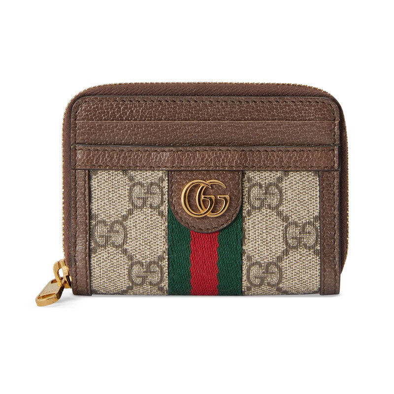Gucci (GUCCI) women's bag card holder Ophidia series new card holder 658552 Valentine's Day gift beige and ebony canvas with brown leather piping