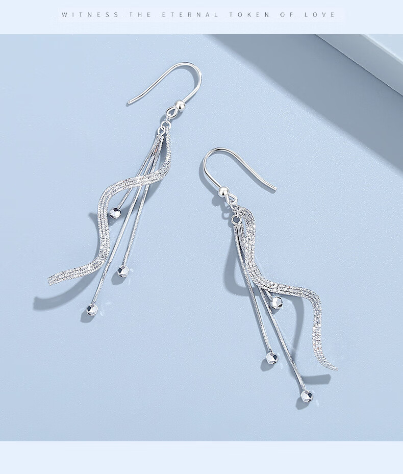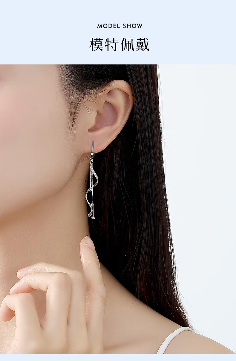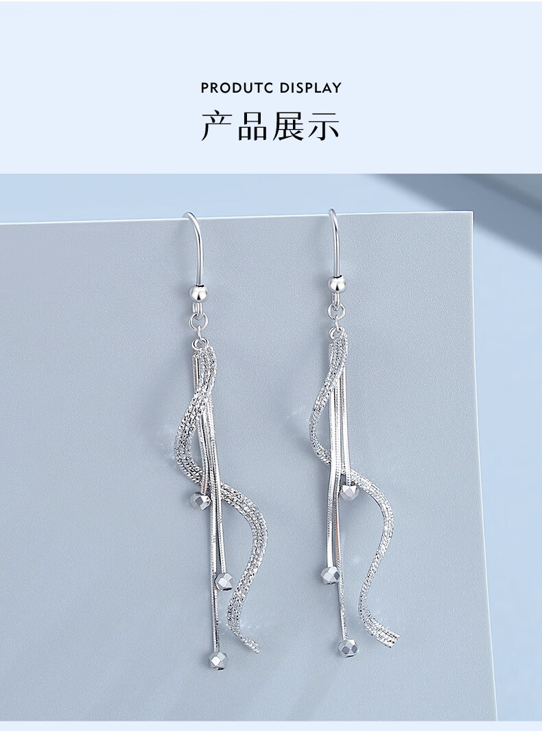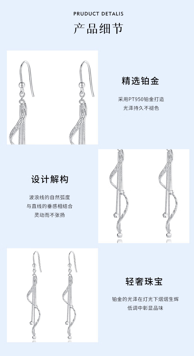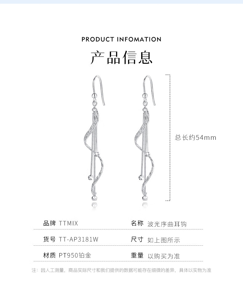 TTMIX long tassel platinum earrings for women pt950 elegant and romantic platinum ear hooks for girlfriend, ready stock 4.5-4.7g