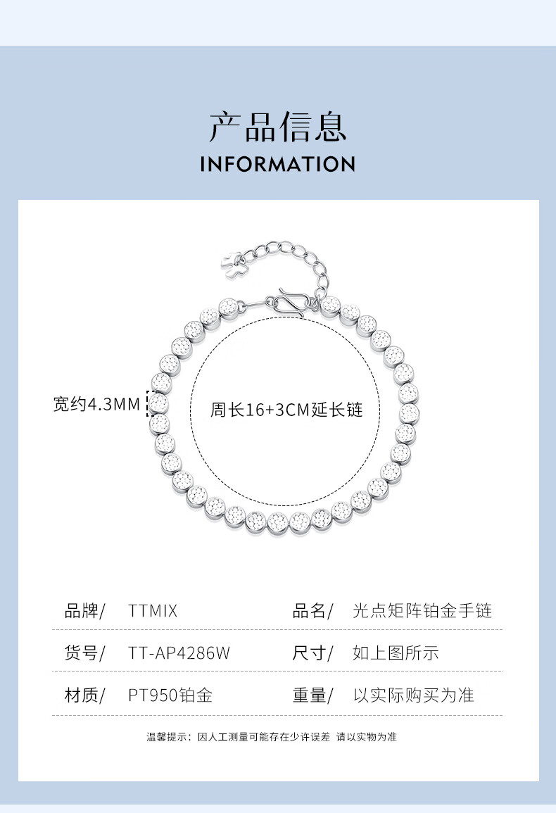 TTMIX shiny honeycomb platinum bracelet for women pt950 platinum hand ornament butterfly tail chain birthday gift 11.7-11.9g