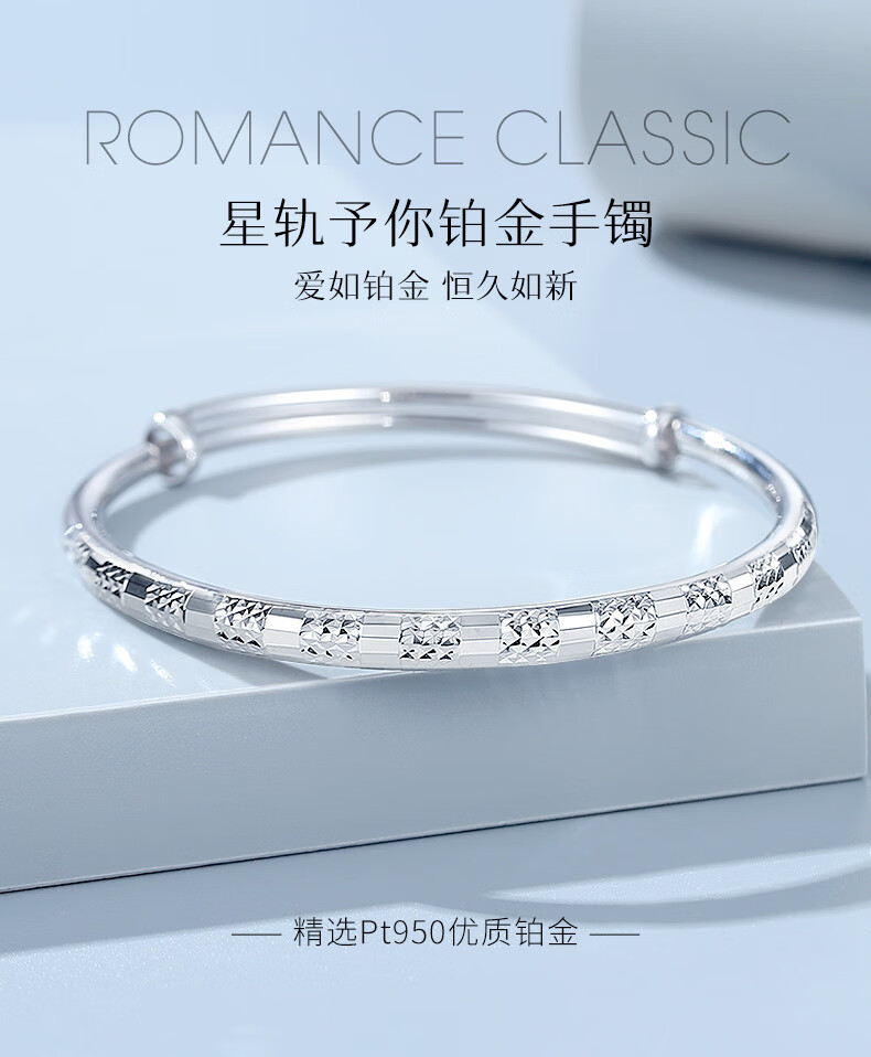 TTMIX round push-pull platinum bracelet for women pt950 platinum round bracelet fashion car flower room glossy bracelet weight 20.45g width 4.4mm