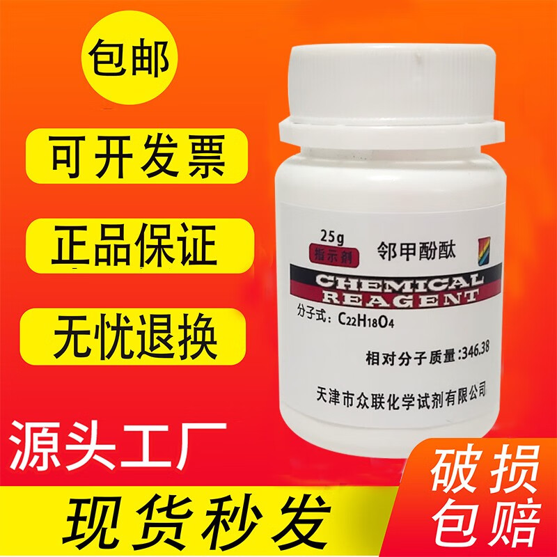 O-cresolphthalein AR25G 3,3-bis(4-hydroxym-toluene)phthalein o-cresolphthalein chemical reagent Tianjin Huasheng o-cresolphthalein 25g