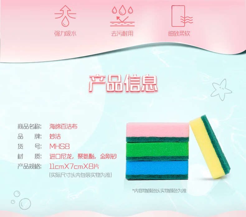 MIAOJIE sponge dishwashing cloths, 8 pieces, absorb water, remove oil, easy to clean without damaging the pot, 10 pieces, sponge dishwashing cloths, 1 pack