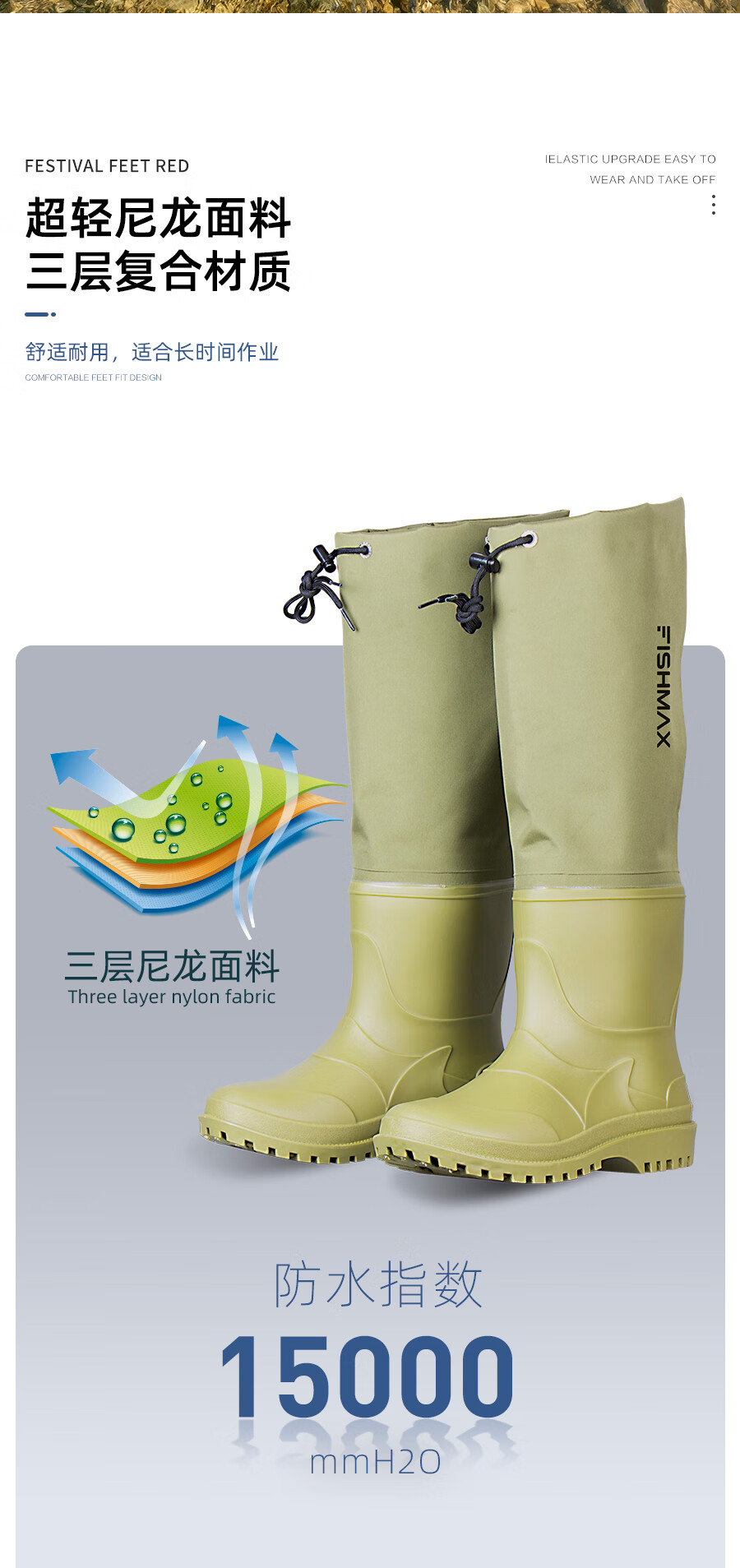 FISHMAX Lua wading shoes, reef fishing, rock fishing shoes, sea rain boots, stream fishing non-slip water boots for men, dark green 43