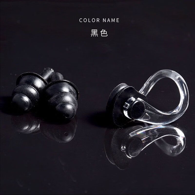 Oeny swimming nose clip earplug set silicone nose plugs for children, anti-choking, adult diving, black, universal soft silicone, 1 nose clip + 2 ears