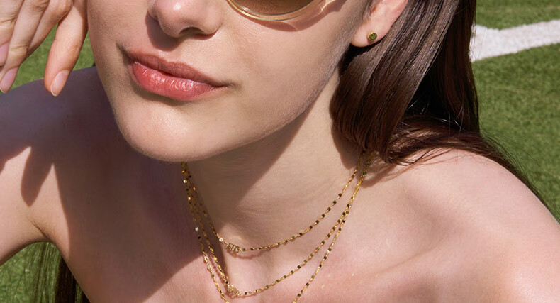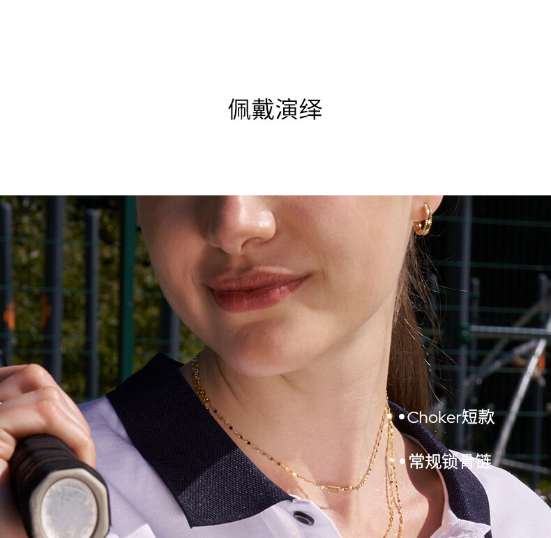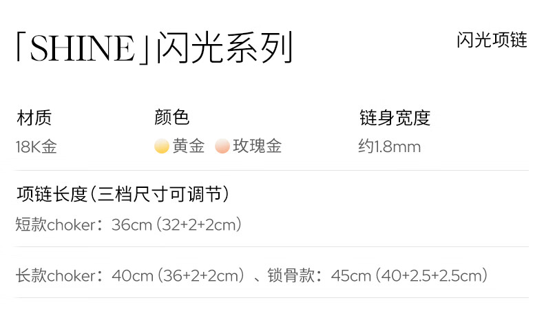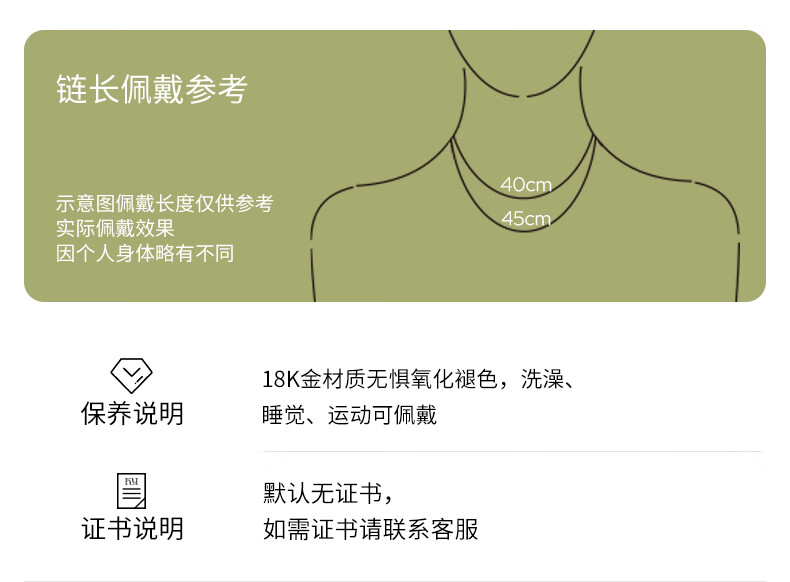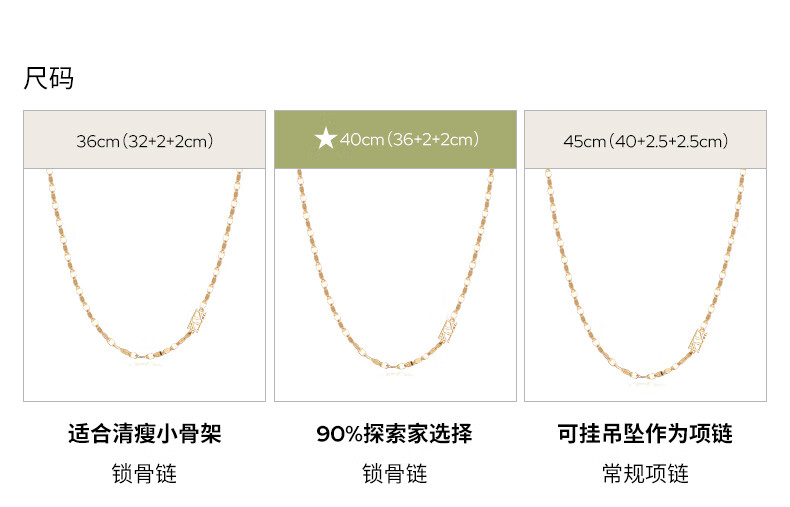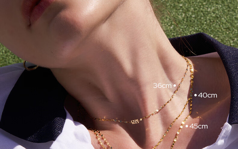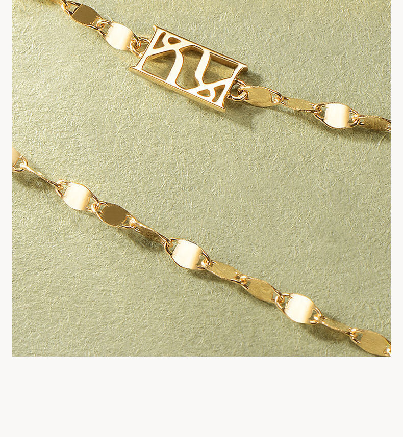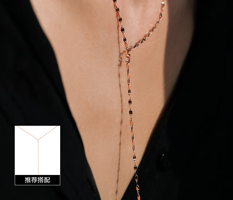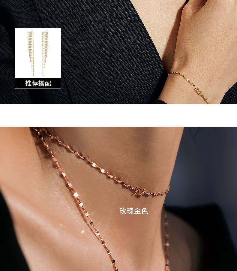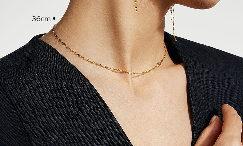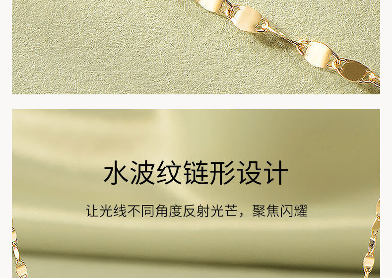 Chuansen 2025 new 18k gold necklace rose gold water ripple chain K gold necklace plain chain 45cm necklace (18K rose gold)