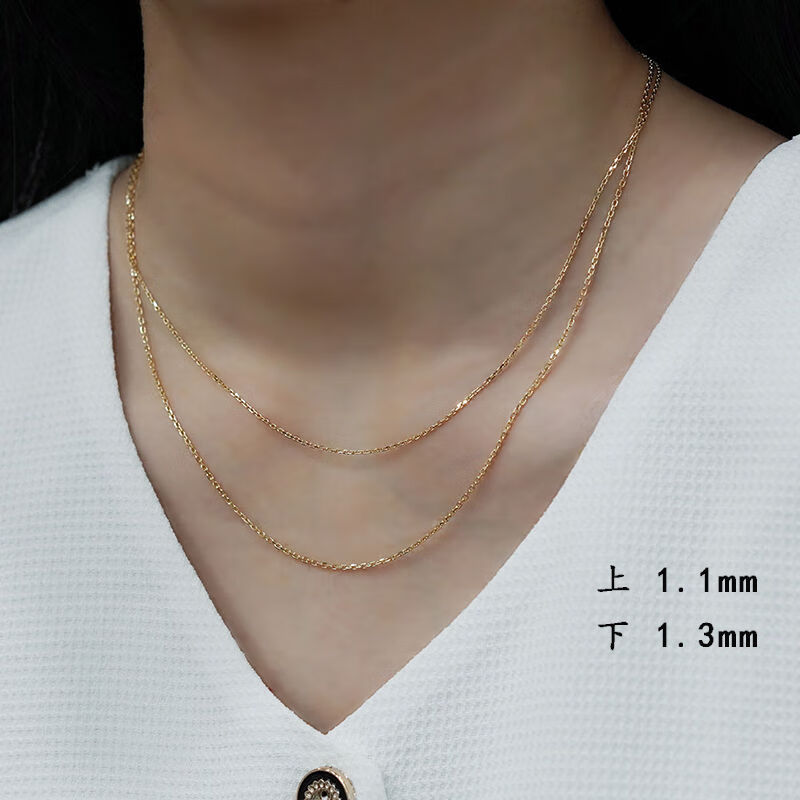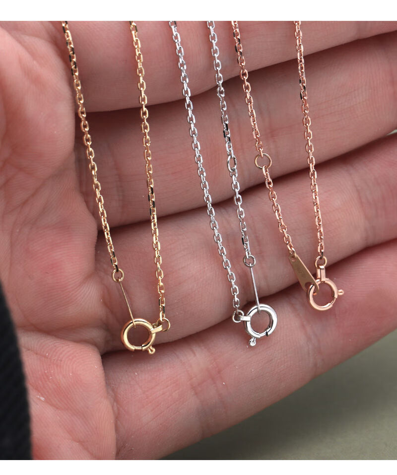 Kawamori Japanese craft white 18k gold necklace plain chain cross chain rose gold clavicle chain k gold au750 plain gold female adjustment rose gold 1.1mm40cm
