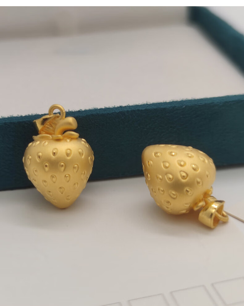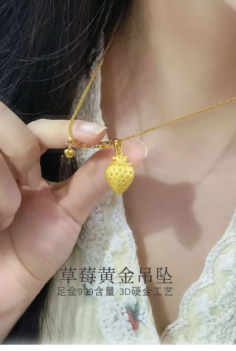 Chuansen 999 Pure Gold Strawberry Gold Pendant 3D Hard Gold Neck Ornament Small Pendant Pure Gold Chopard Necklace 2022 New Women's Pure Gold Strawberry Pendant Free Silver Chain 1.72g