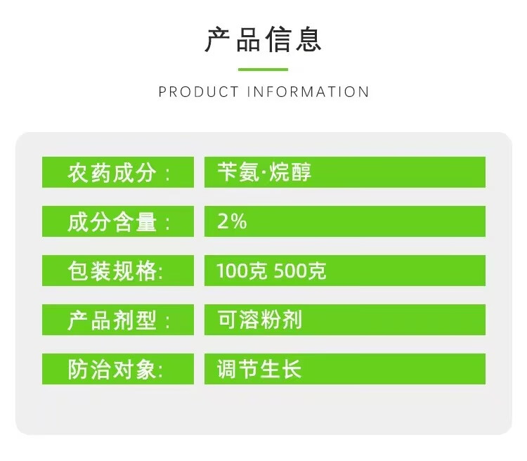 Benzylaminoalkanol, benzylaminopurine, triacontanol, wheat, corn, and rice fruit enlarging growth regulator 100g