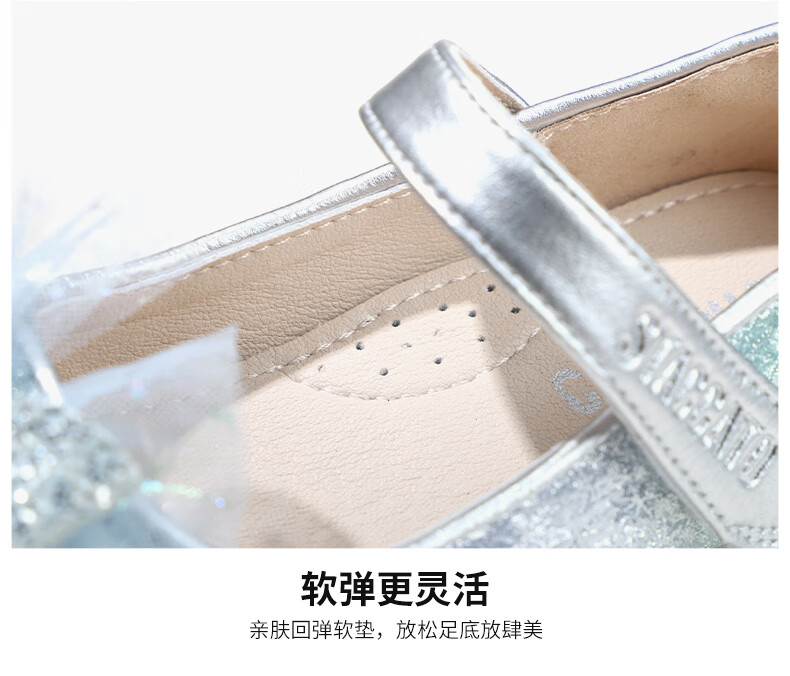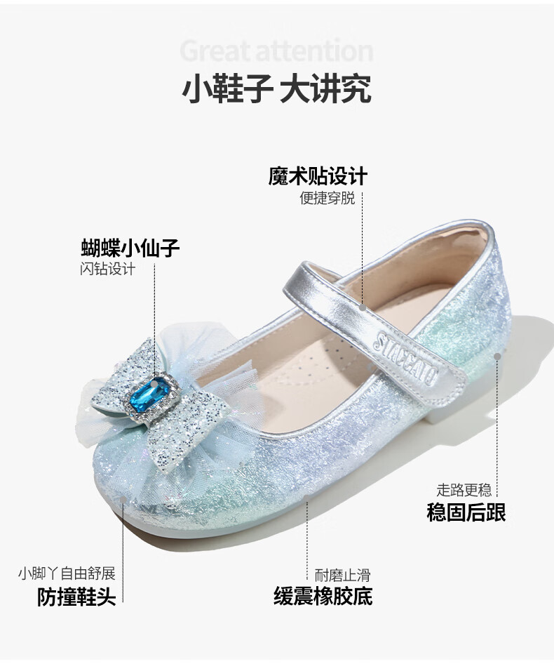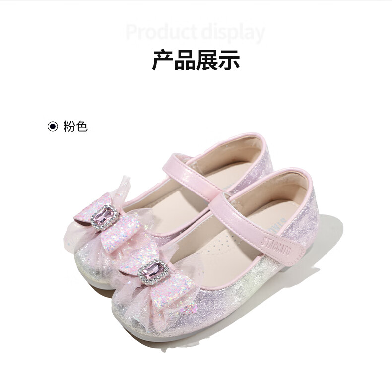 Scatto children's shoes, girls' Elsa Princess shoes, spring and autumn baby shoes, little girls crystal single shoes, children's soft-soled small leather shoes, trendy O97469 color/pink 30