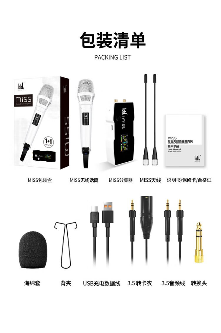 Ickb miss wireless dynamic microphone sound card live singing complete set of mobile phone computer audio outdoor and indoor universal Douyin Kuaishou anchor stage speech professional karaoke microphone ickb miss wireless microphone one for two (official standard)