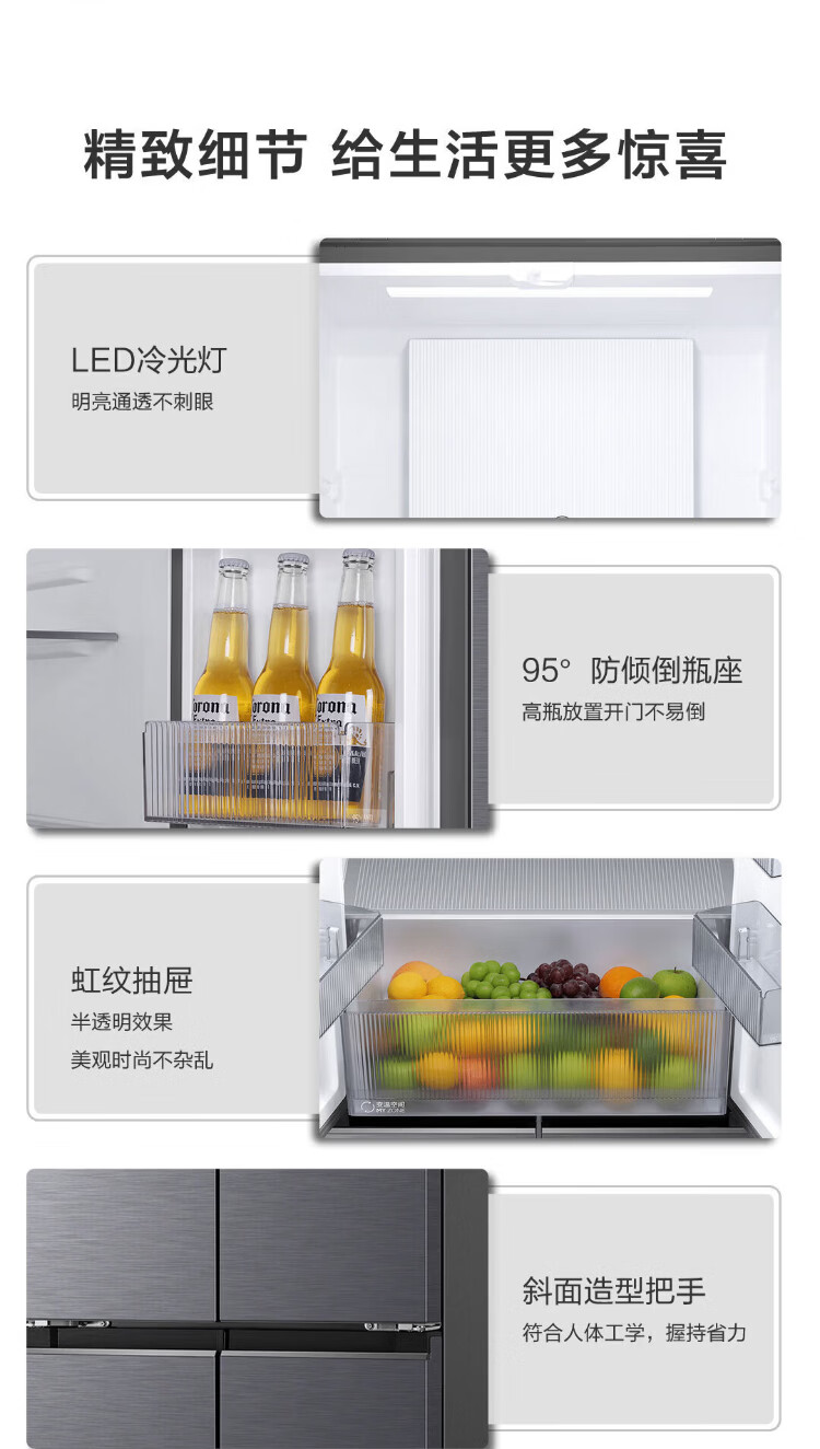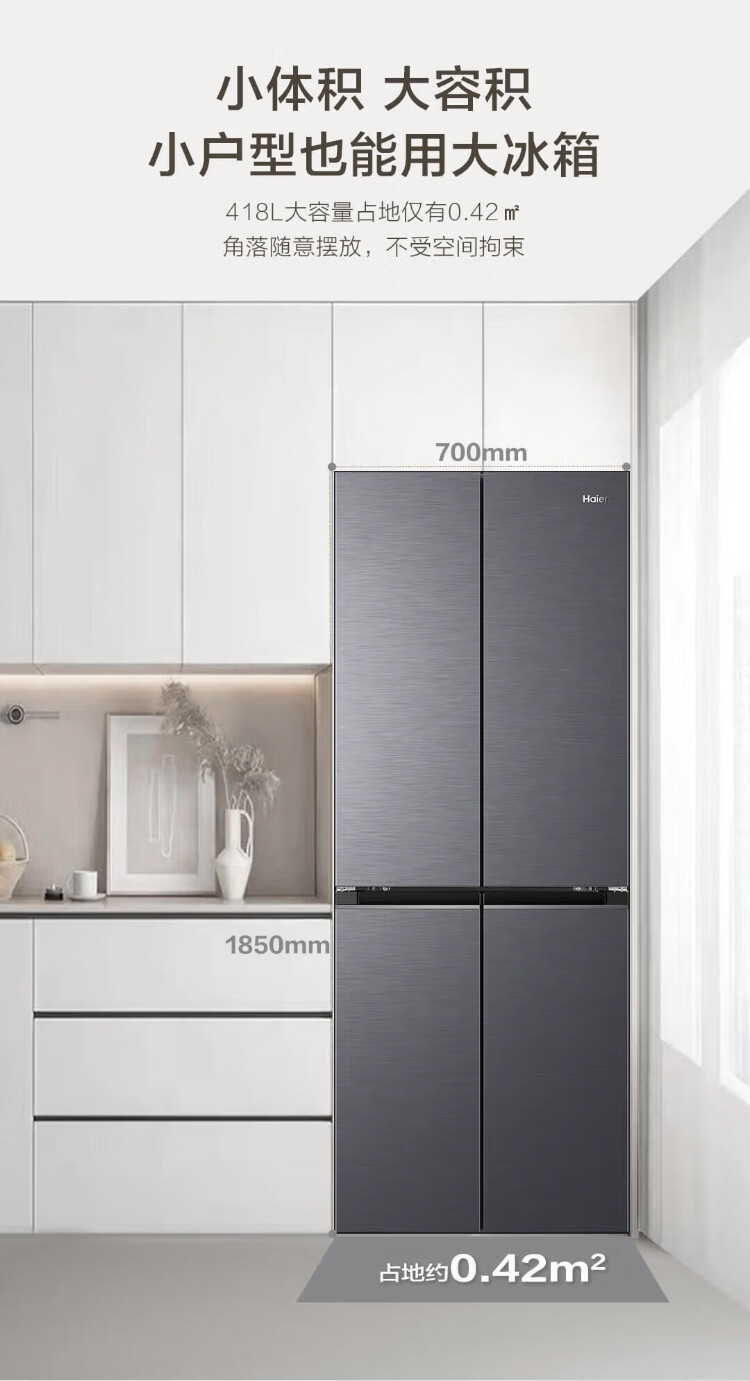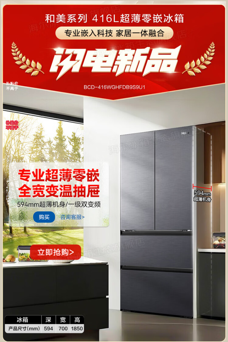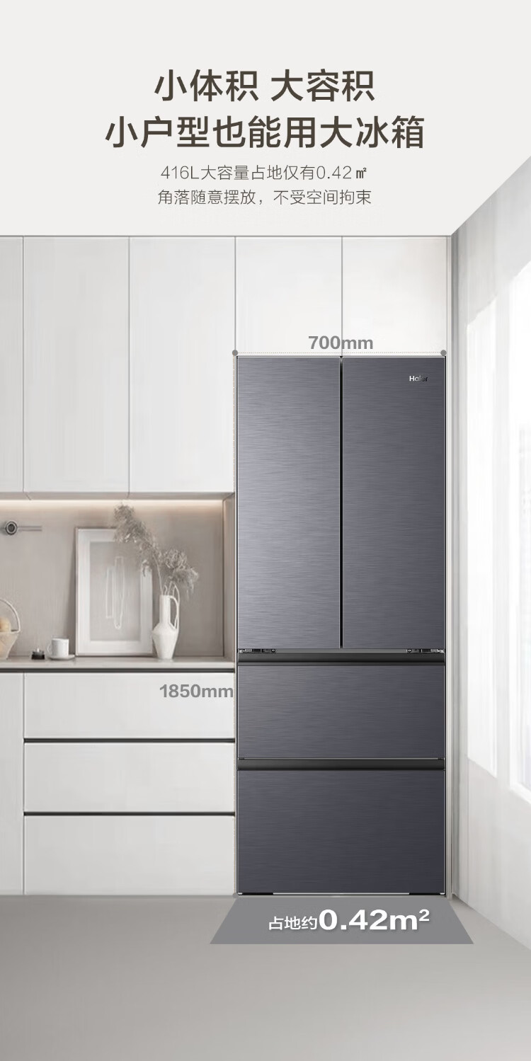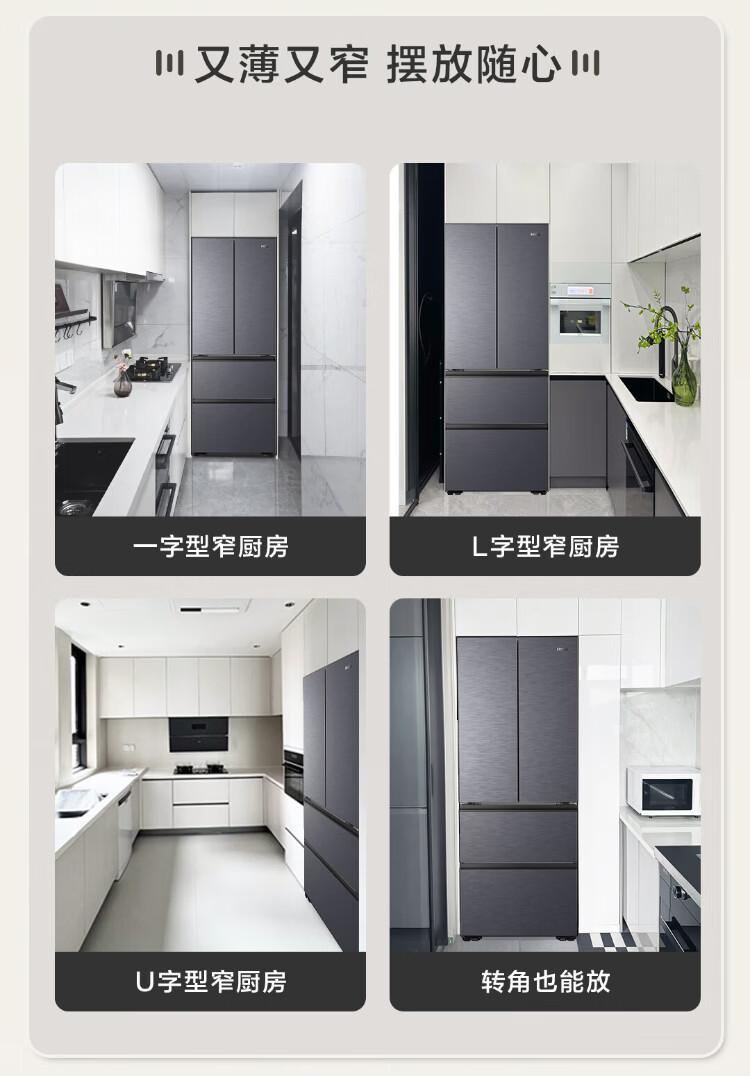 Haier Xiaohonghua 2.0 ultra-thin zero-embedded refrigerator 416 liters 594mm ultra-thin 70cm wide first-class energy efficiency double frequency household embedded French four-door multi-door refrigerator 416 liters | 594mm ultra-thin zero-embedded refrigerator | antibacterial rate 99.99%