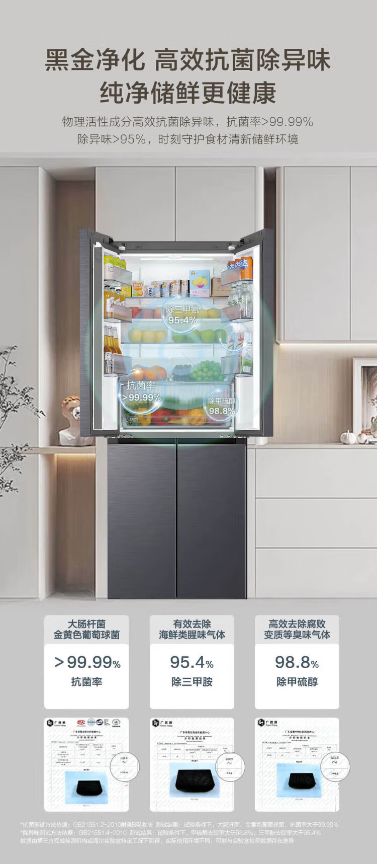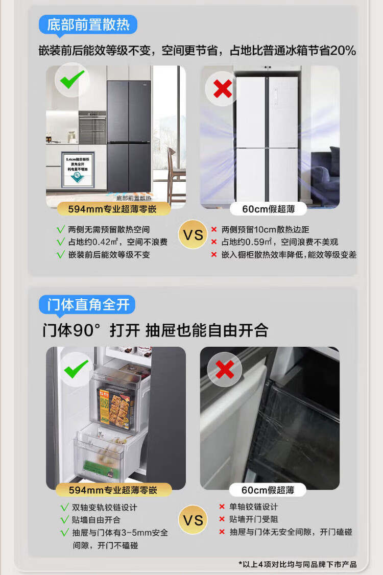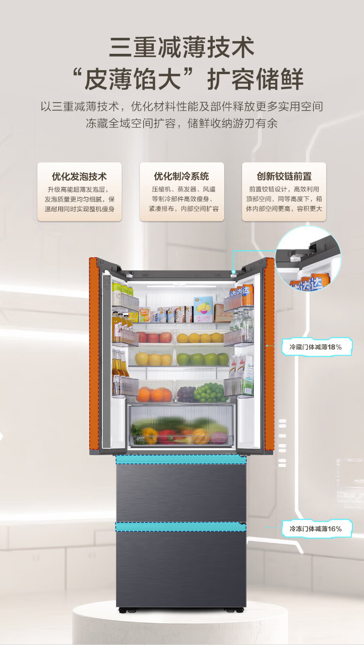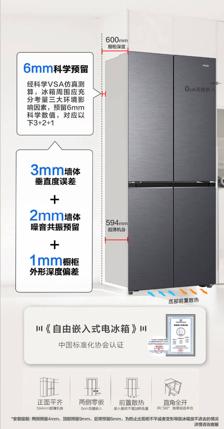 Haier Xiaohonghua 2.0 ultra-thin zero-embedded refrigerator 416 liters 594mm ultra-thin 70cm wide first-class energy efficiency double frequency household embedded French four-door multi-door refrigerator 416 liters | 594mm ultra-thin zero-embedded refrigerator | antibacterial rate 99.99%