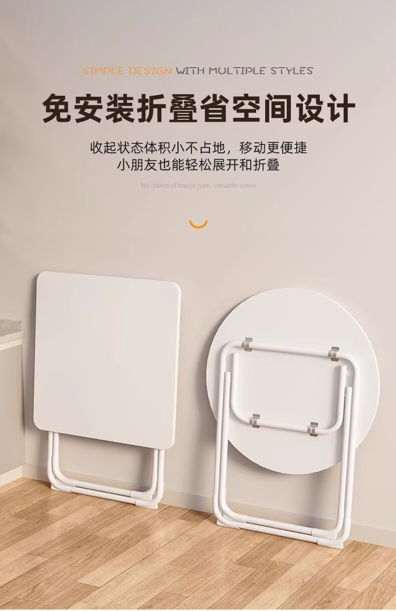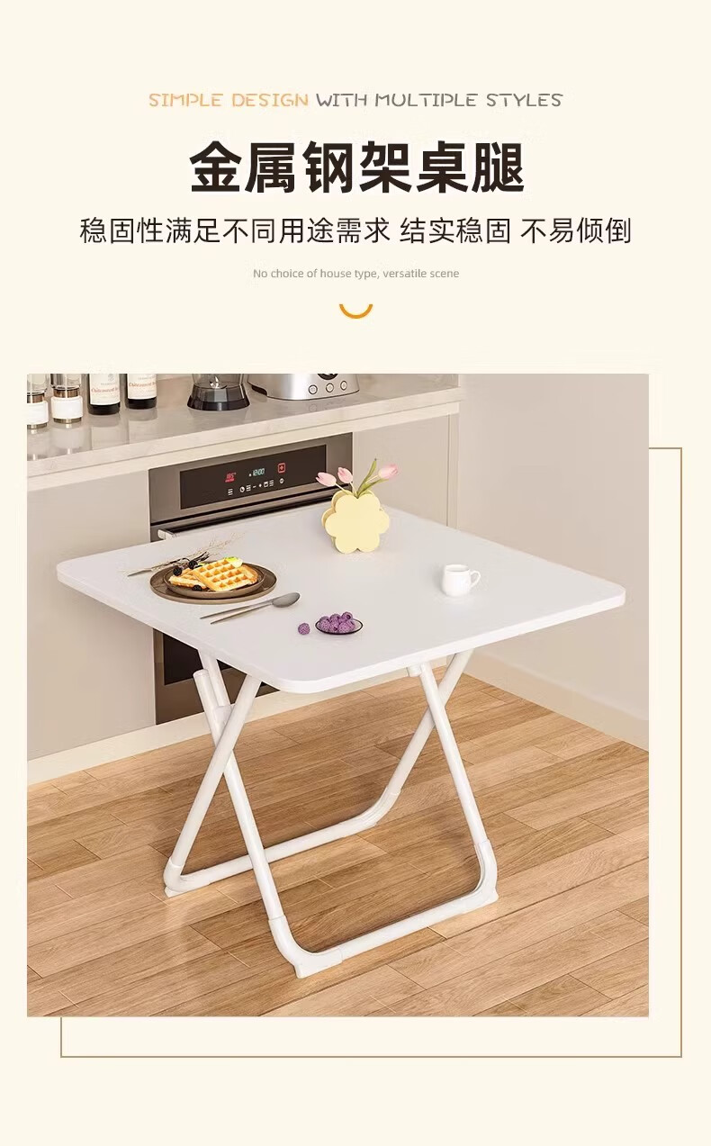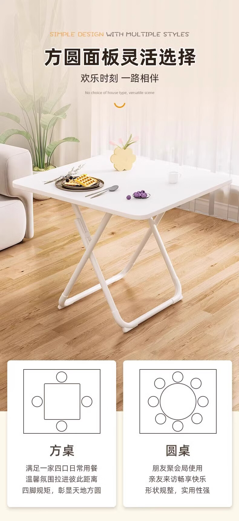 Folding table dining table for home outdoor dining square table balcony round table portable dining table simple set table and chair combination small 2-3 person white 60cm square table