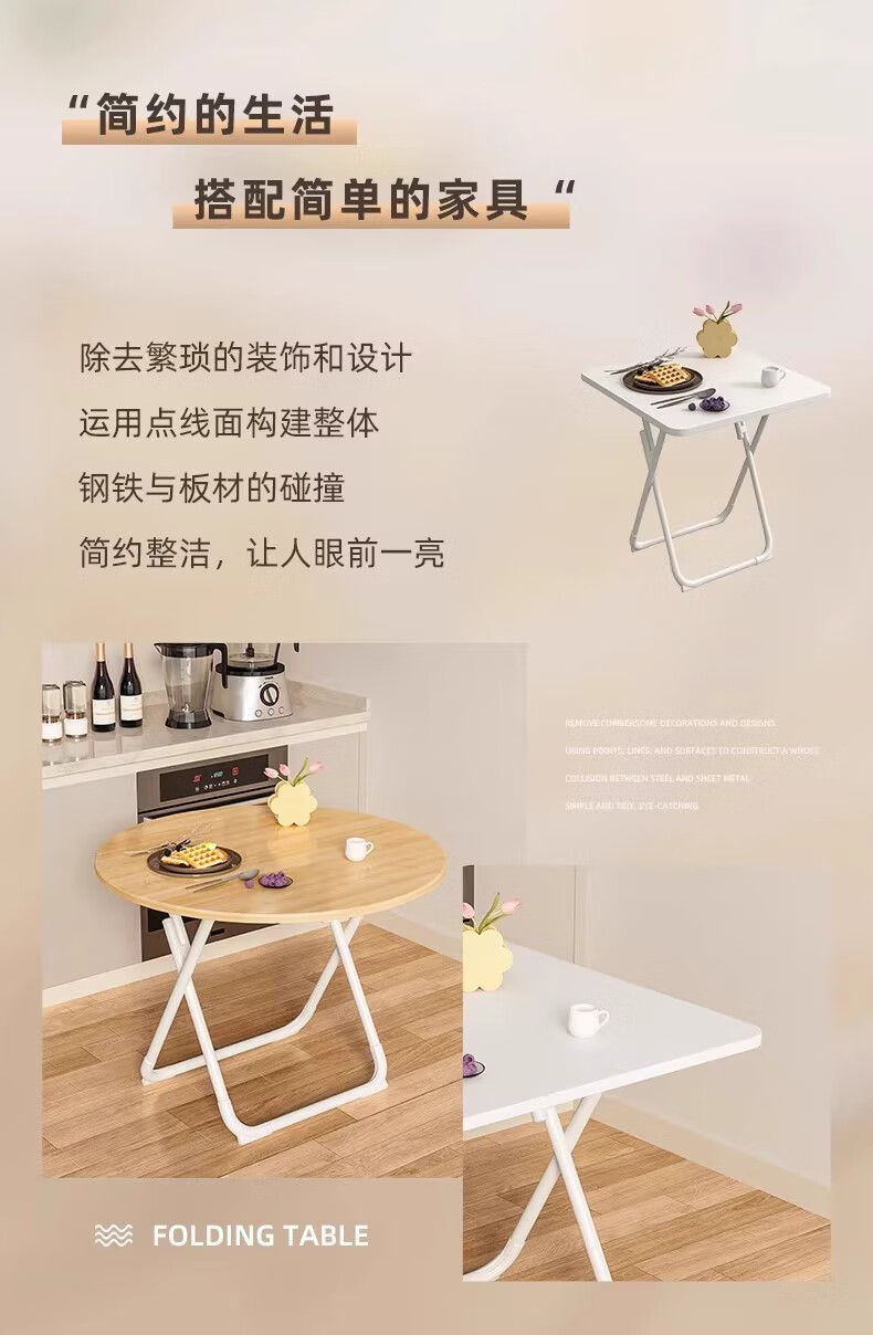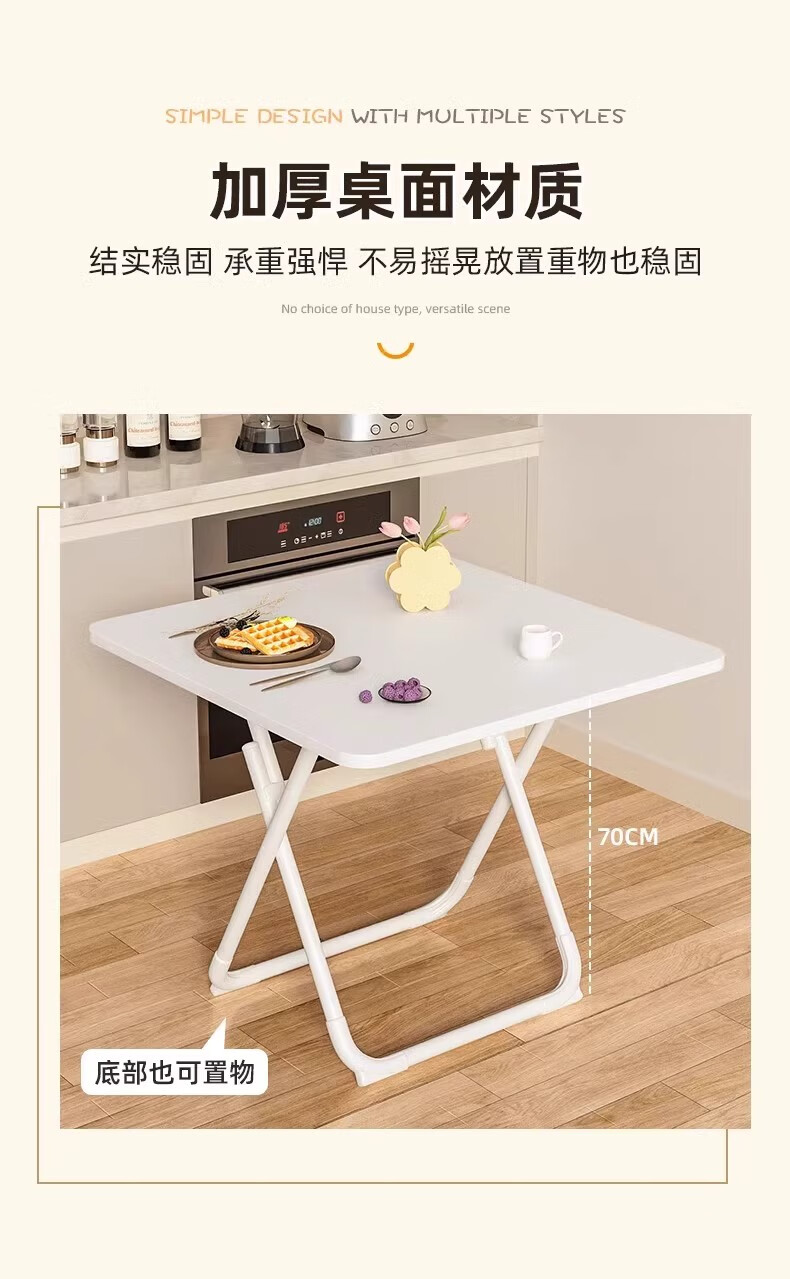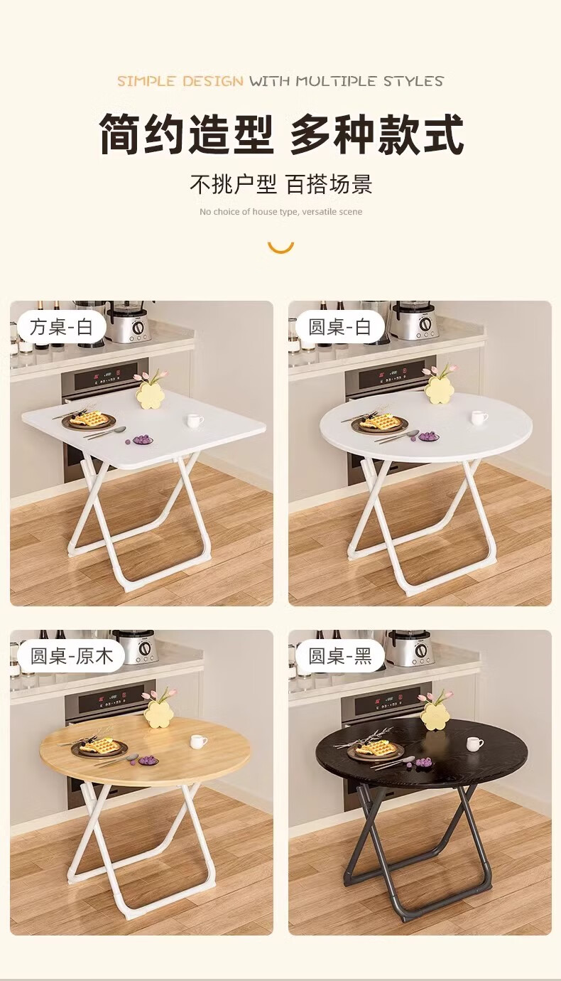 Folding table dining table for home outdoor dining square table balcony round table portable dining table simple set table and chair combination small 2-3 person white 60cm square table