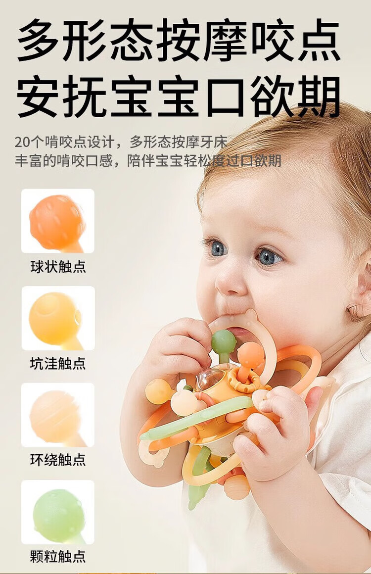 Scoornest Scoornest Manhattan hand ball baby silicone chewable teether early education baby toy grip molar stick Orshi Galaxy hand ball + free anti-drop 0 pieces