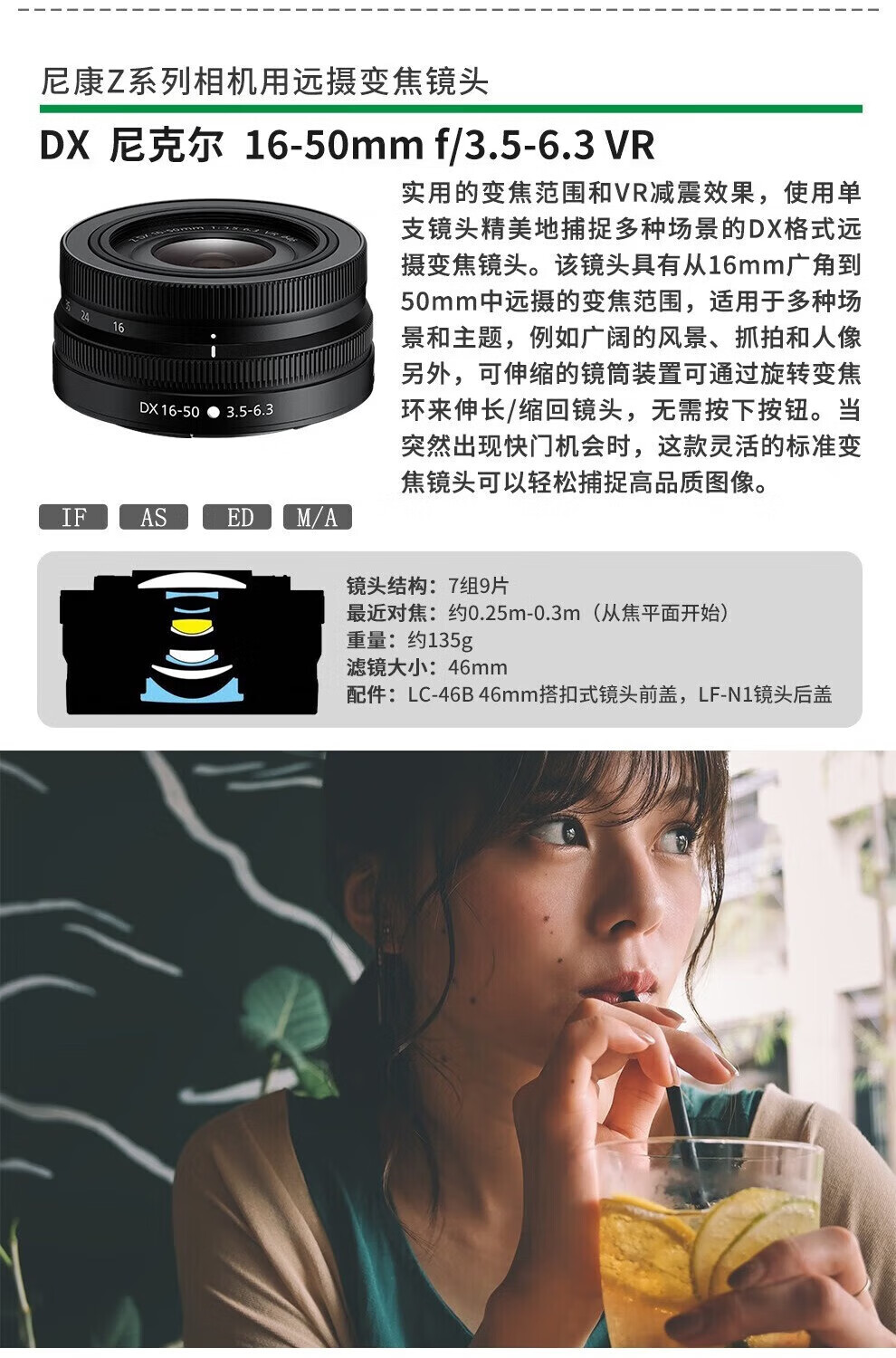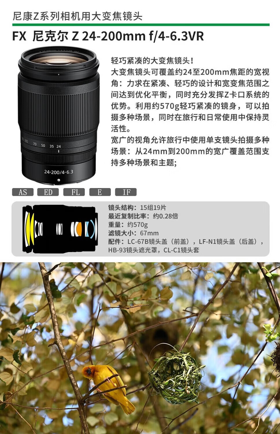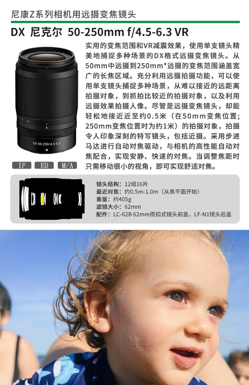 Nikon lens Z mount series mirrorless camera full frame fixed focus zoom portrait/landscape official new Z50-250mm f/4.5-6.3 zoom lens supports anti-shake - official new and authentic