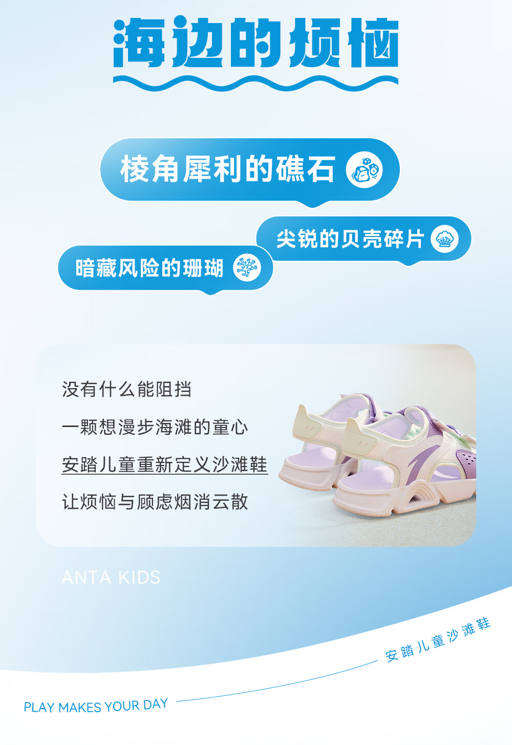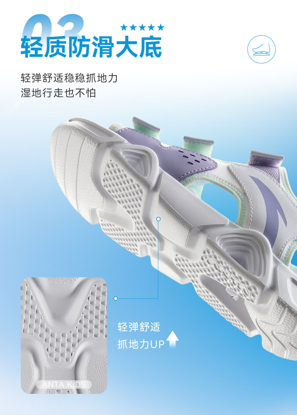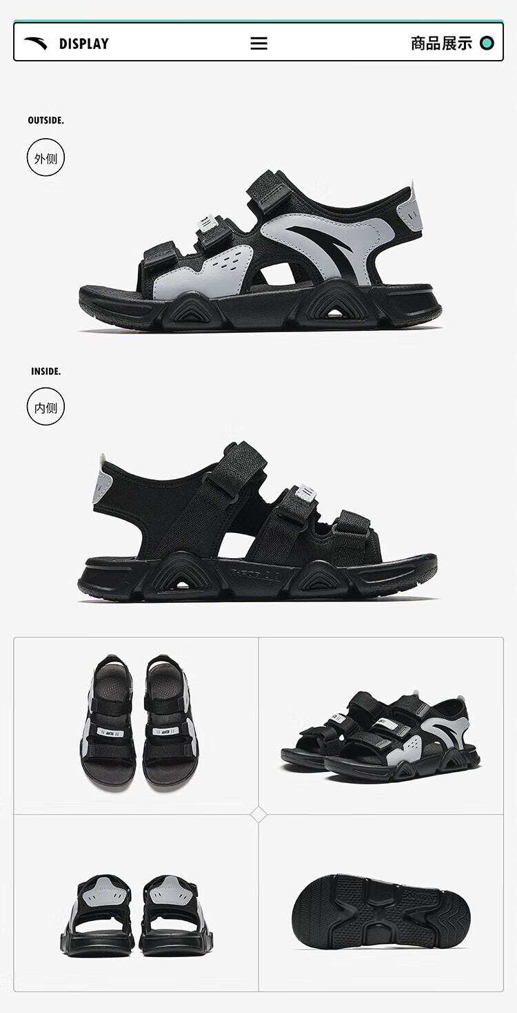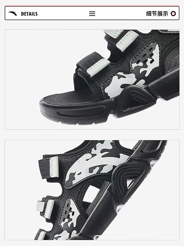ANTA (ANTA) children's sandals, men's and women's shoes, 2026 spring new spring Velcro children's open-toe Lingbo arch beach shoes, girls black/clear water powder/ANTA white-9 36