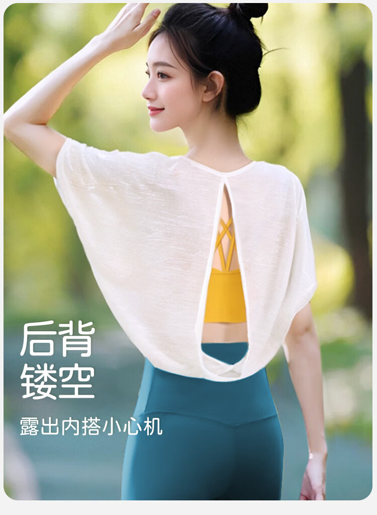 Shuangxiu yoga clothing set, high-end three-piece set, beautiful Pilates slim fit breathable loose blouse sports fitness bra white blouse M 100-110