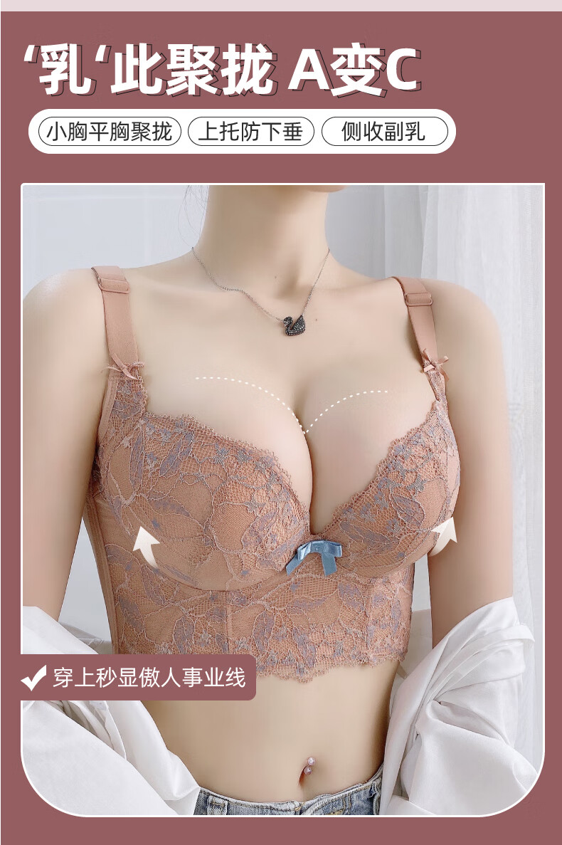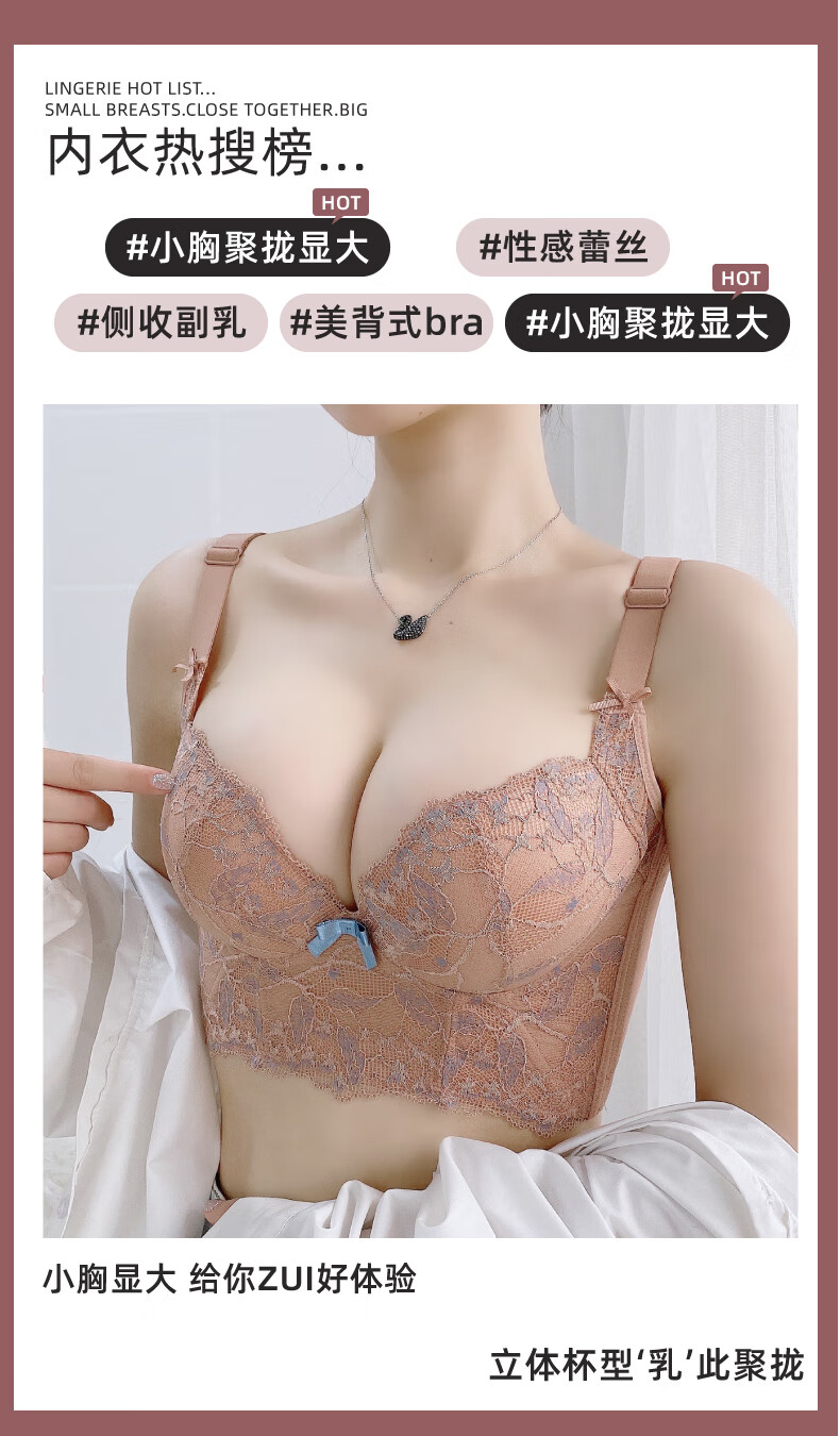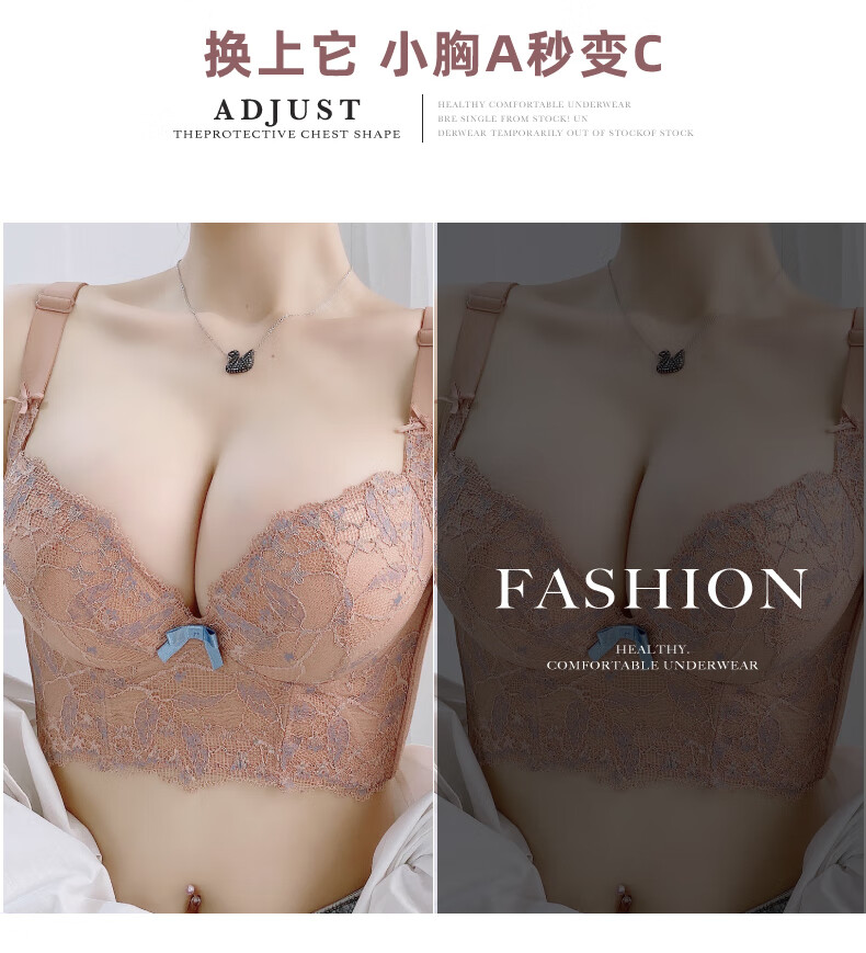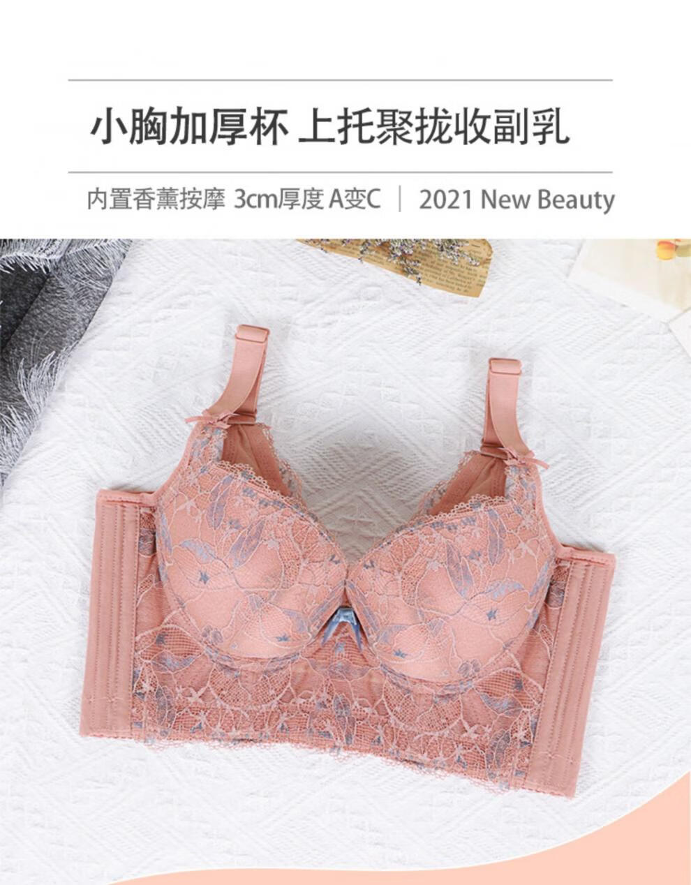 Modal Beauty Salon High-End Adjustable Bra Small Breast Revealing Bigger Essential Oil Thick Cup Push-Up Bra to Shrink Secondary Breasts and Prevent Expansion Bra Sakura Pink 75A 34A=