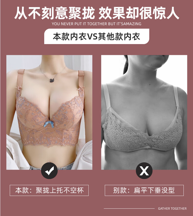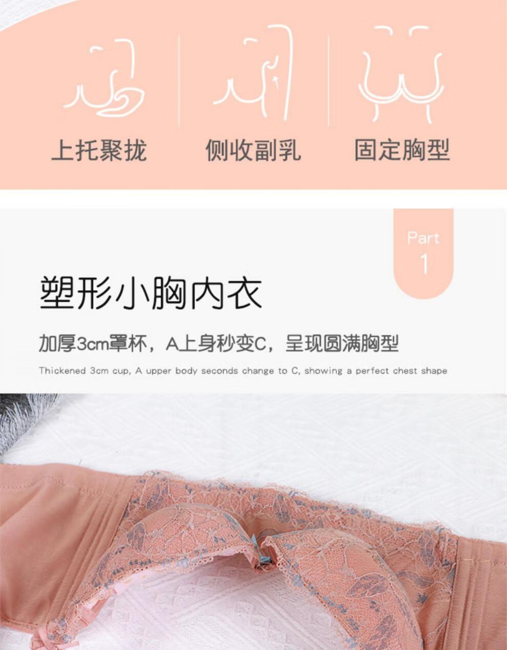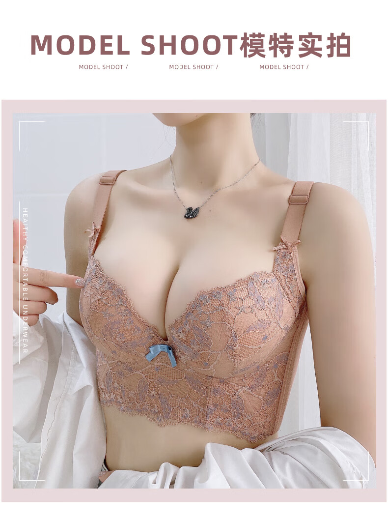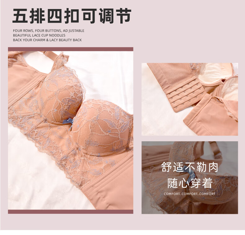 Modal Beauty Salon High-End Adjustable Bra Small Breast Revealing Bigger Essential Oil Thick Cup Push-Up Bra to Shrink Secondary Breasts and Prevent Expansion Bra Sakura Pink 75A 34A=