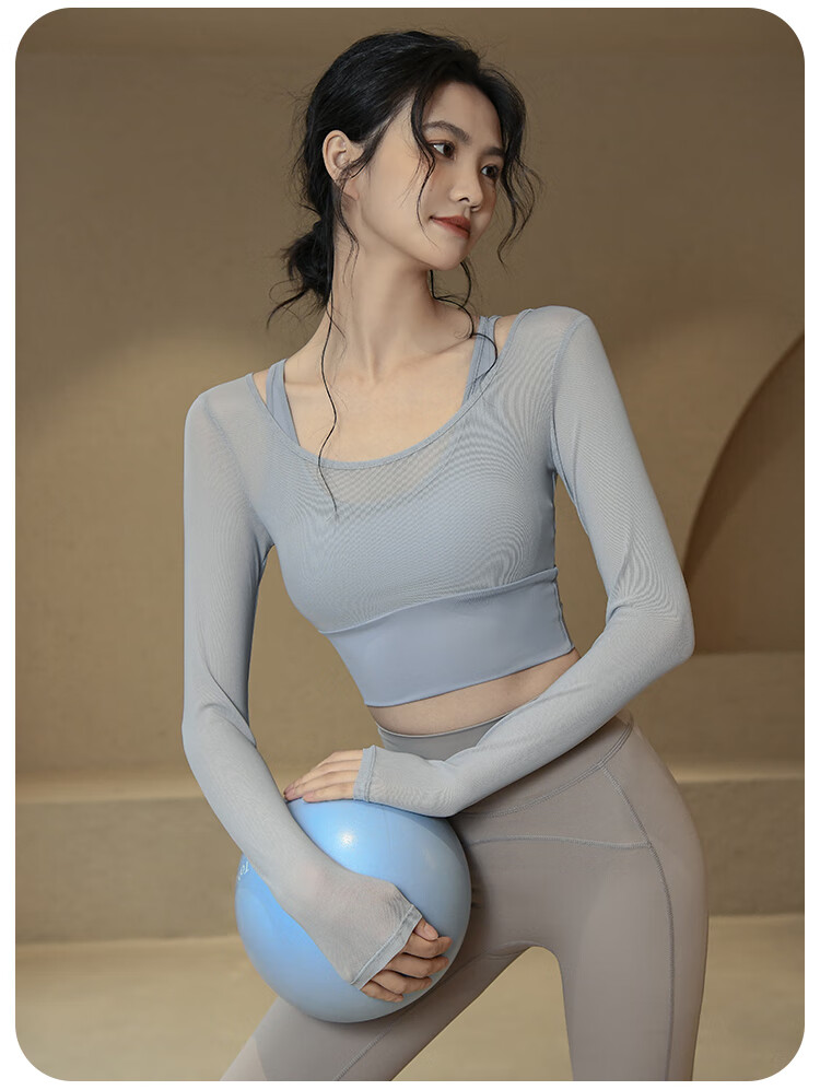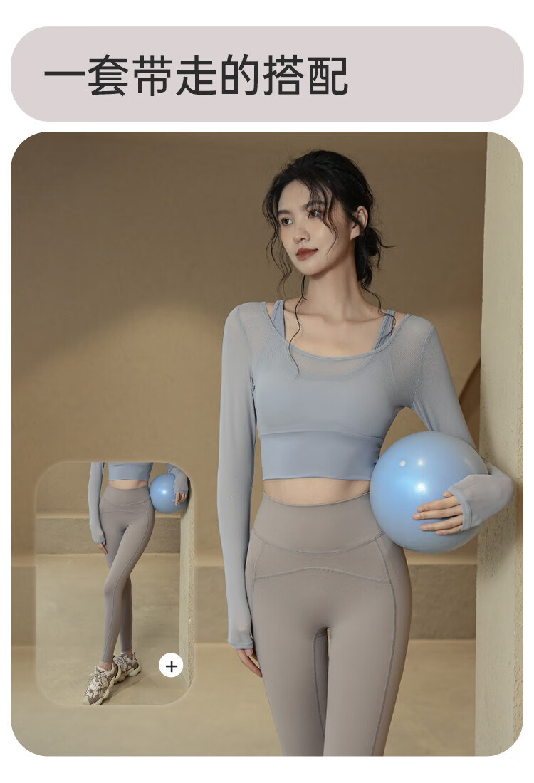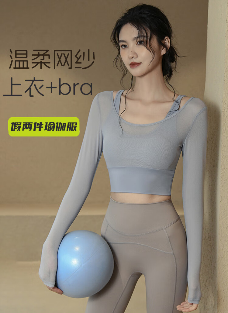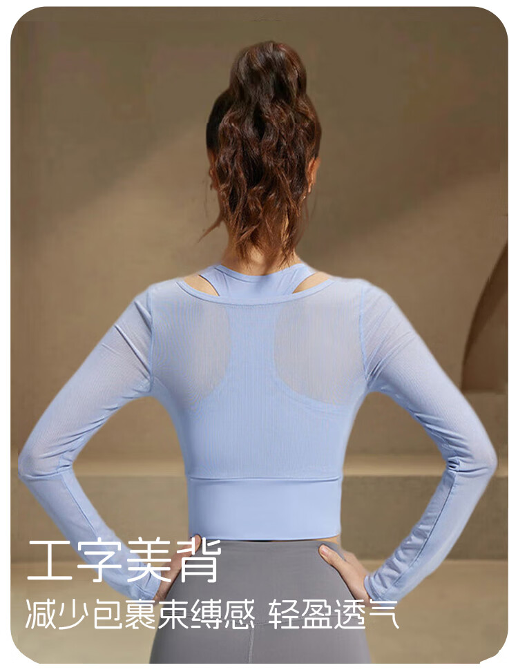 Laishuhui Yoga Wear Women's Fake Two-Piece Sports Top with Breast Pads Temperament Slim Blouse Pilates Training Fitness Long Sleeve Fake Two-Piece Yoga Wear-Mist Blue M 95-105Jin Jin is equal to 0.5 kg
