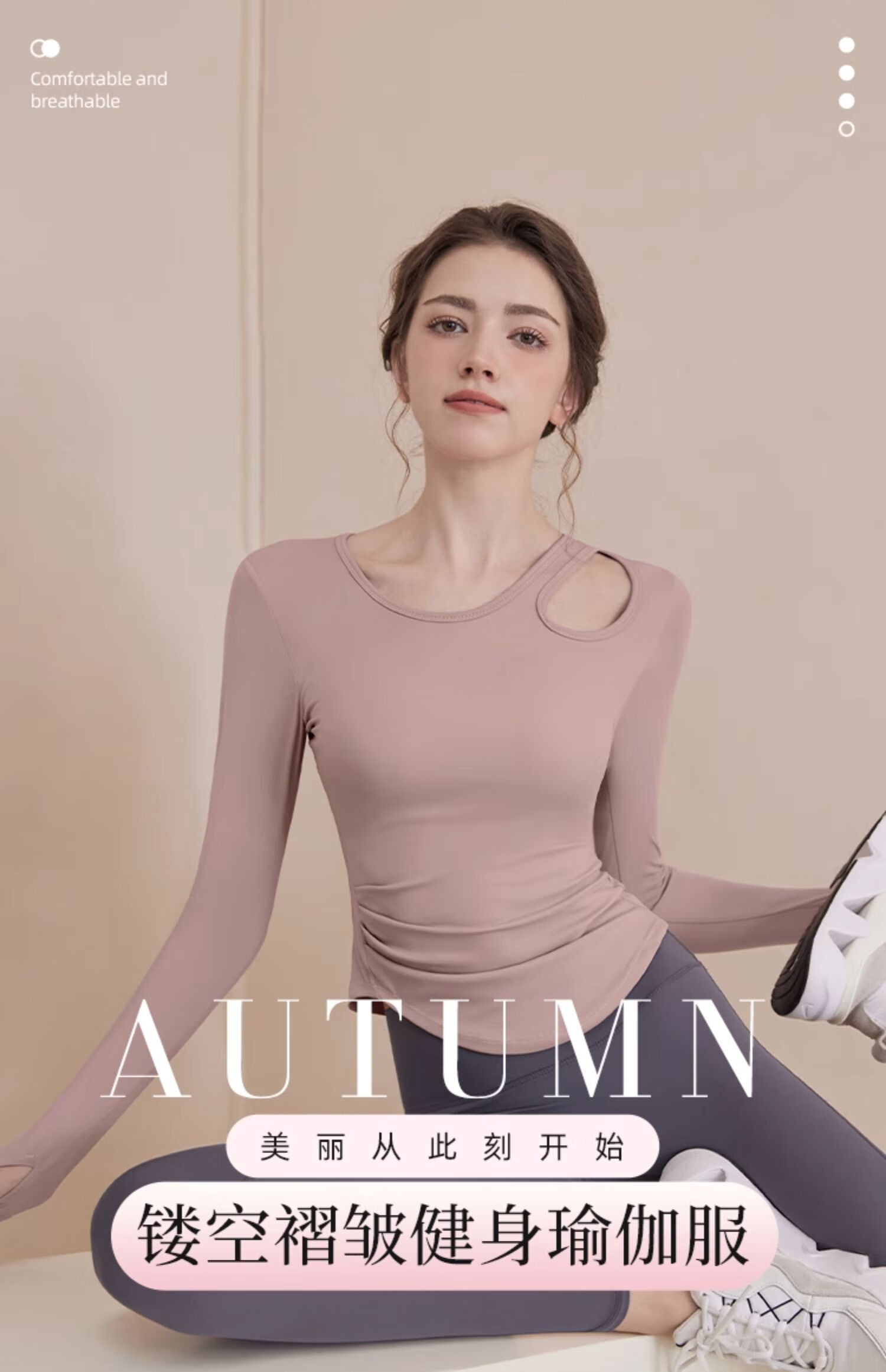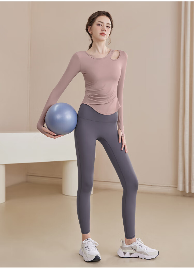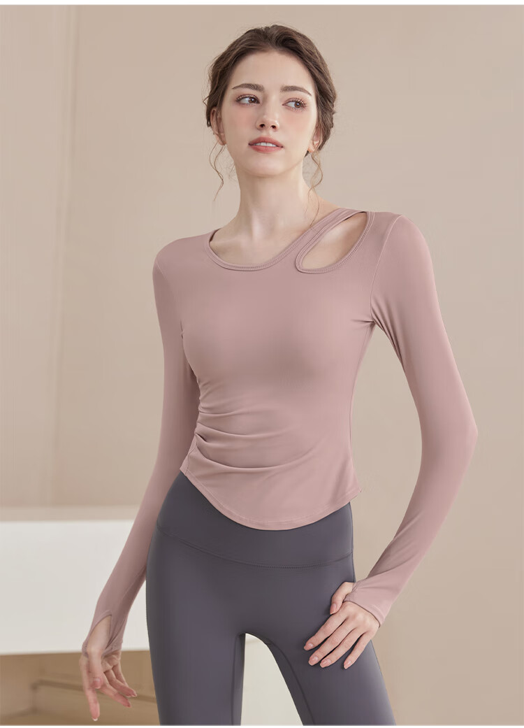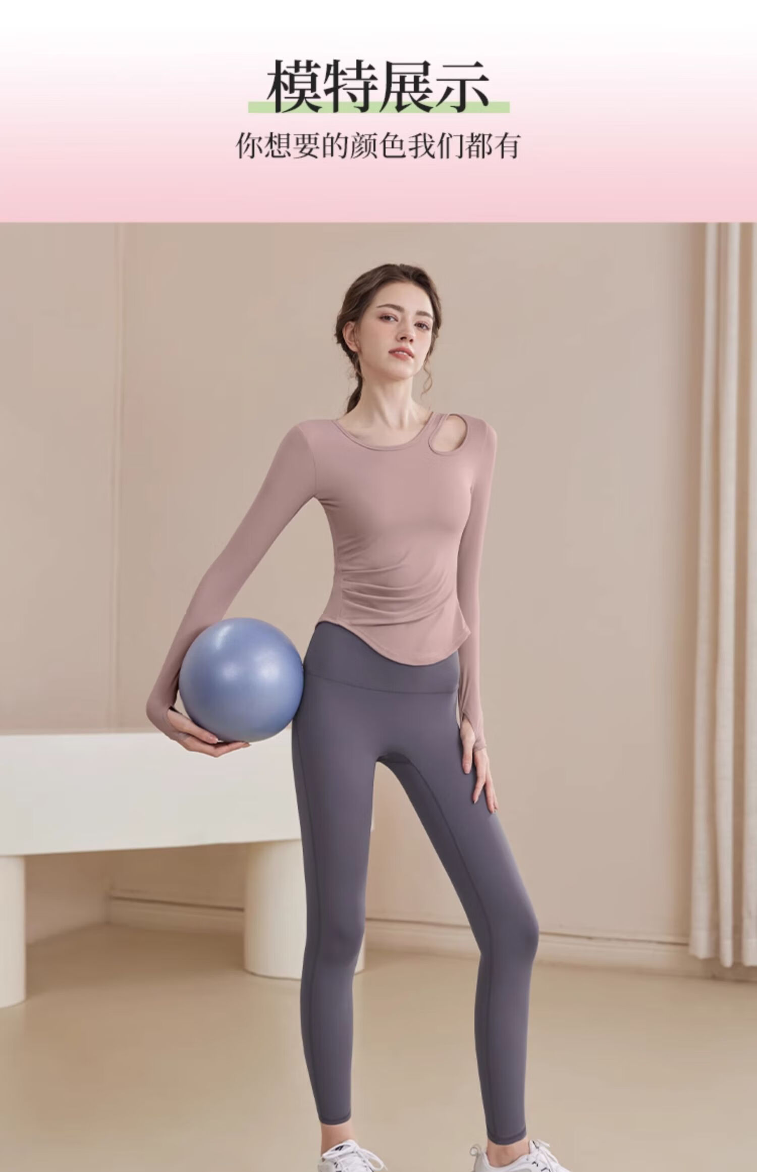 Laishuhui yoga clothes for women spring and summer sports long-sleeved quick-drying women's fitness running Pilates training clothes with chest pads yoga clothes tops - pink and purple M 95-110 Jin Jin equals 0.5 kg