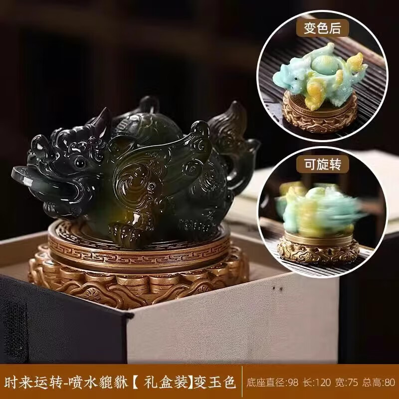 Hig Shark changes color when heated, rotating Golden Toad Pi Xiu, tea pet, time to rotate ornaments, tea table, tea table, lucky home opening gift, Golden Rotating Pi Xiu (Safety Packaging) No Specifications