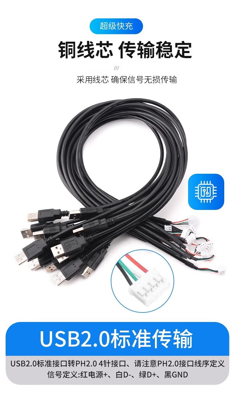 USB male touch screen terminal data cable xh2.54/ph2.0/mx1.25/sh1.0 motherboard usb connection cable USB male to PH2.0 female 2-core power cord 20cm others