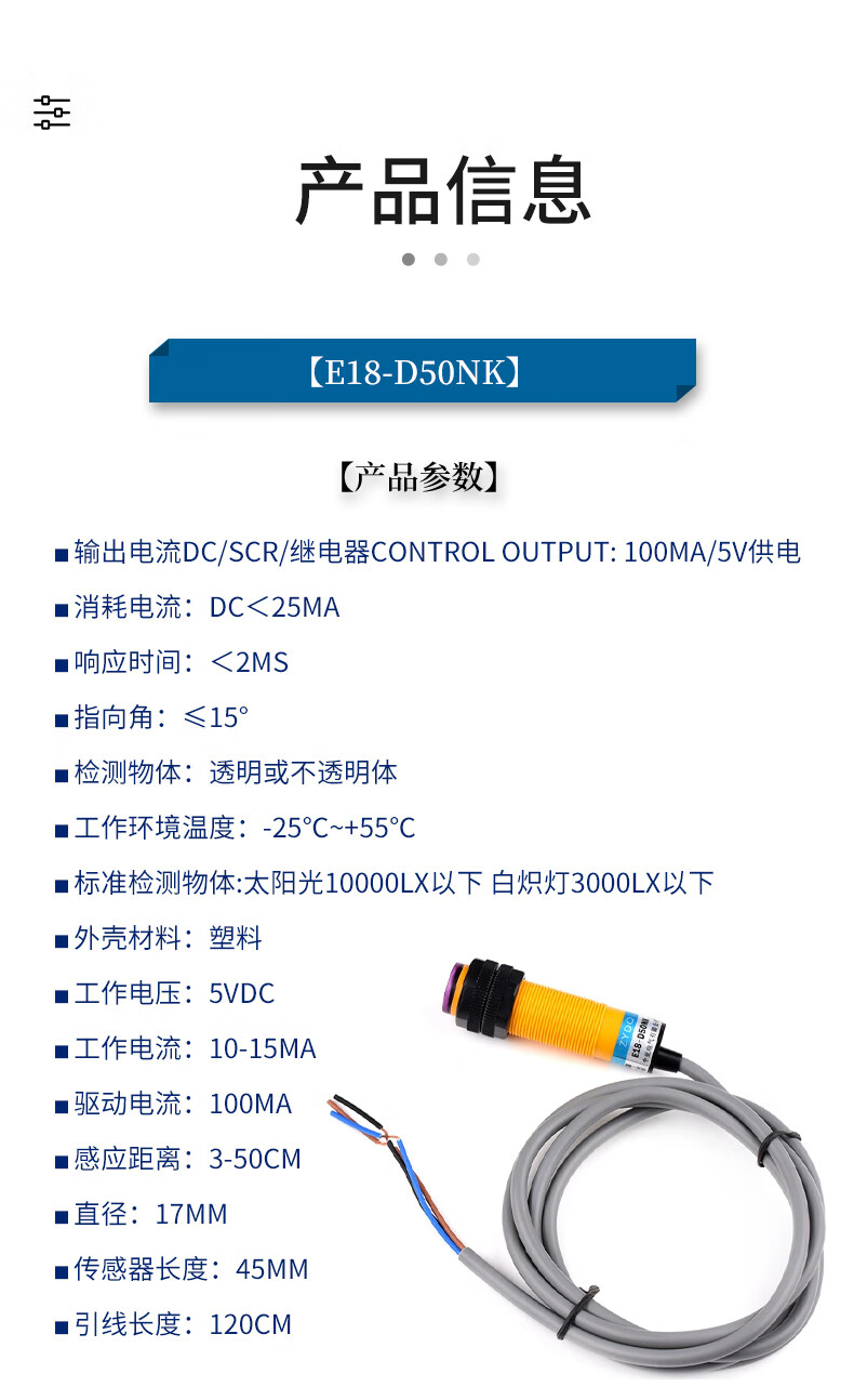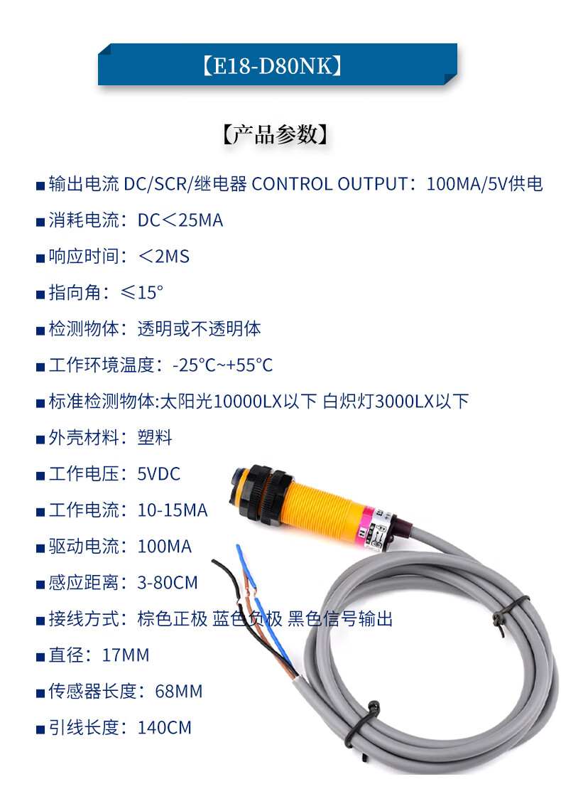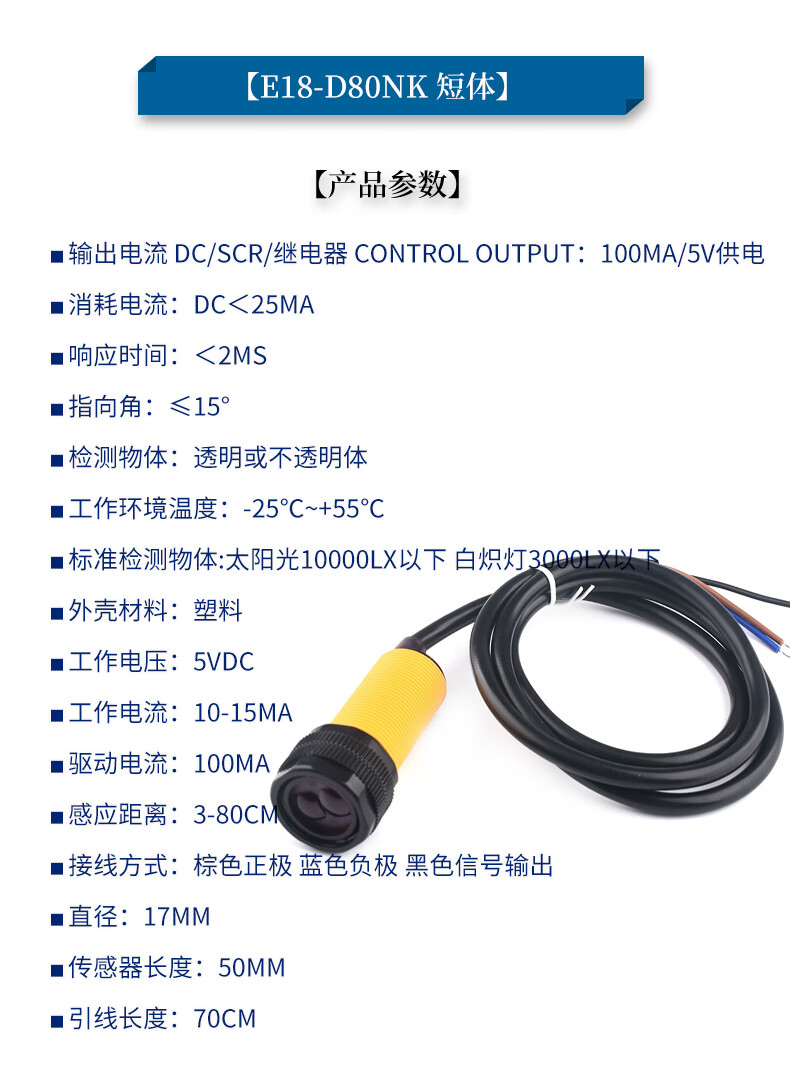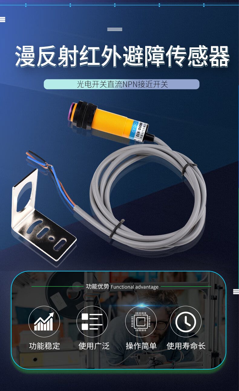 Intelligent obstacle avoidance long tube E18-D50NK infrared photoelectric switch diffuse reflection sensor 5V proximity switch E18-D80NK short body