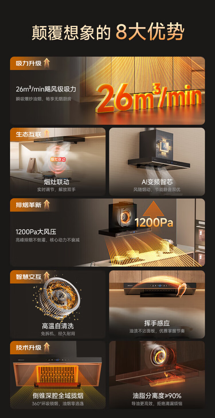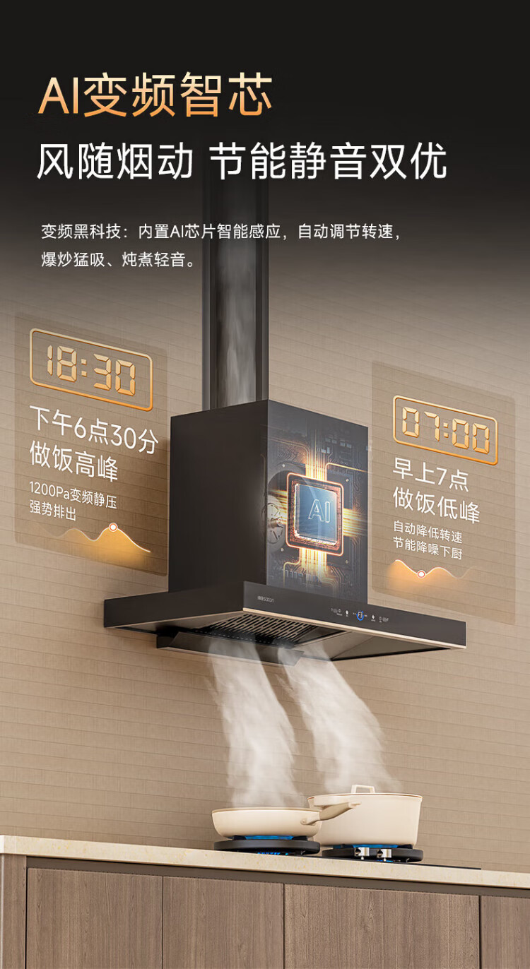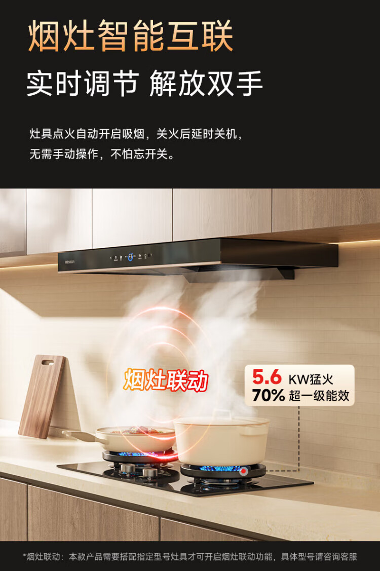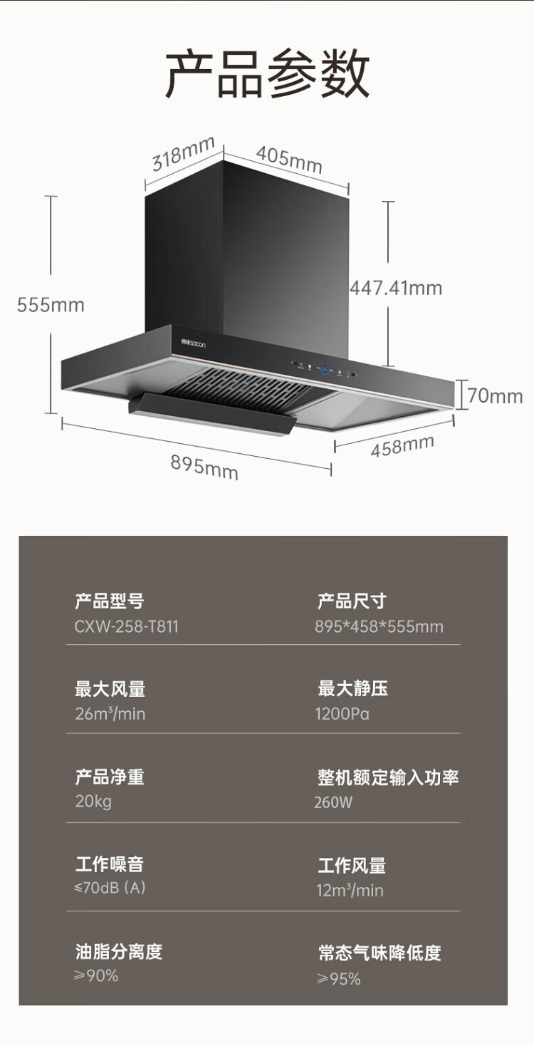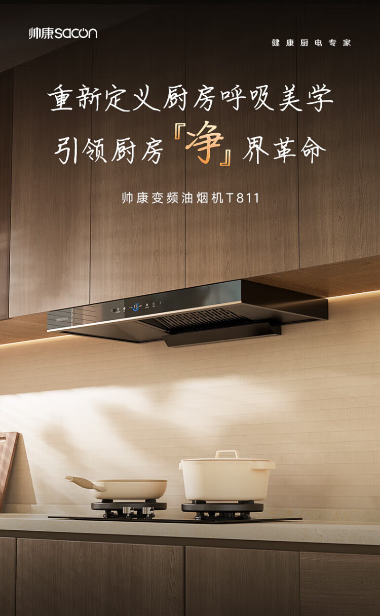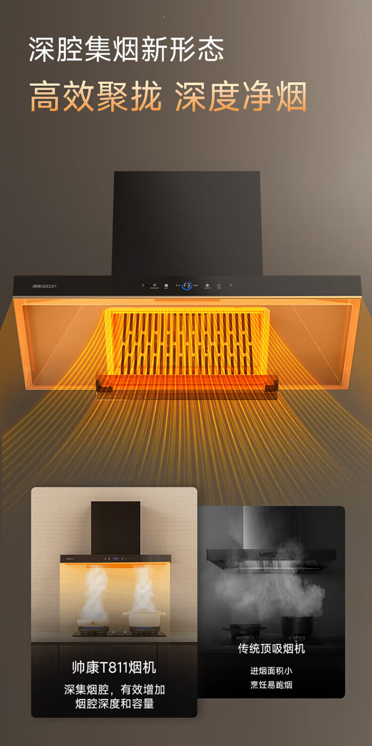 Sacon 25 new products 1200pa variable frequency large suction range hood T811/T818 national subsidy 20% European household self-cleaning gas stove linkage package optional T811 hood + 812 fierce fire stove natural gas