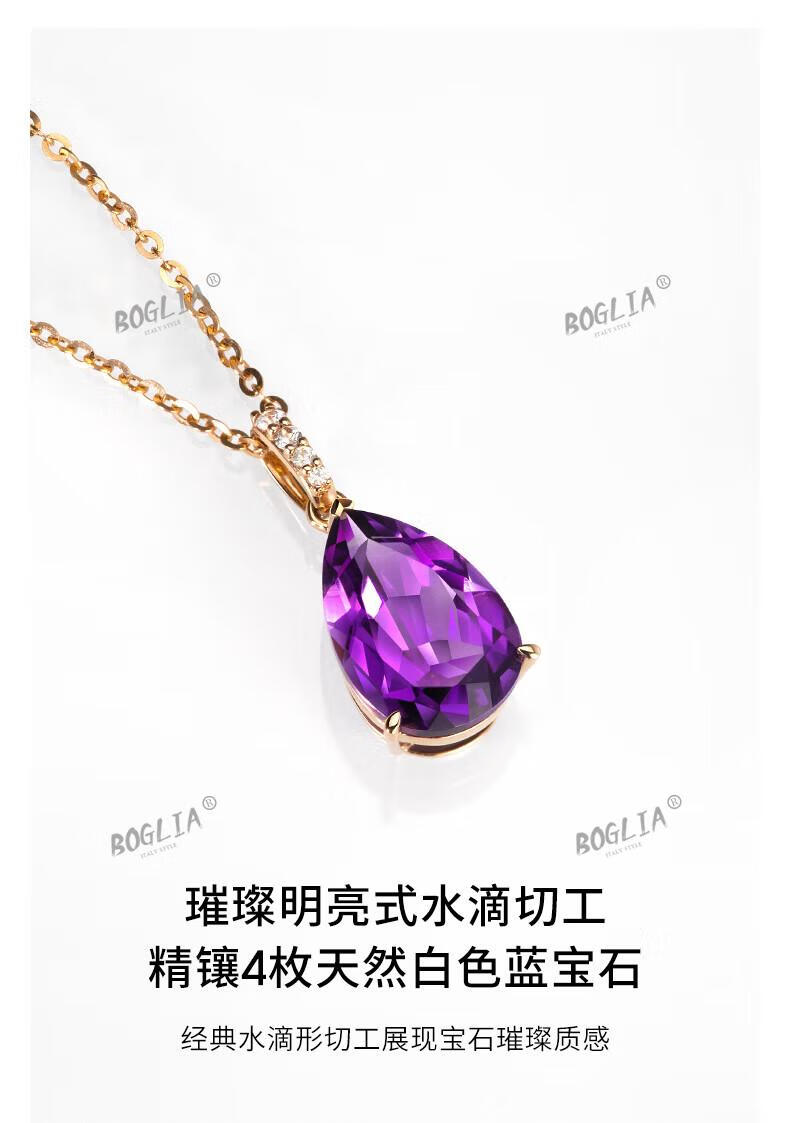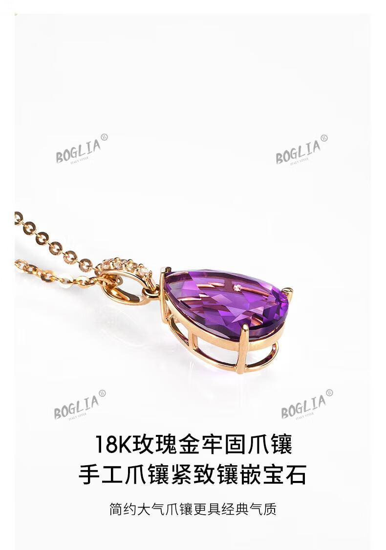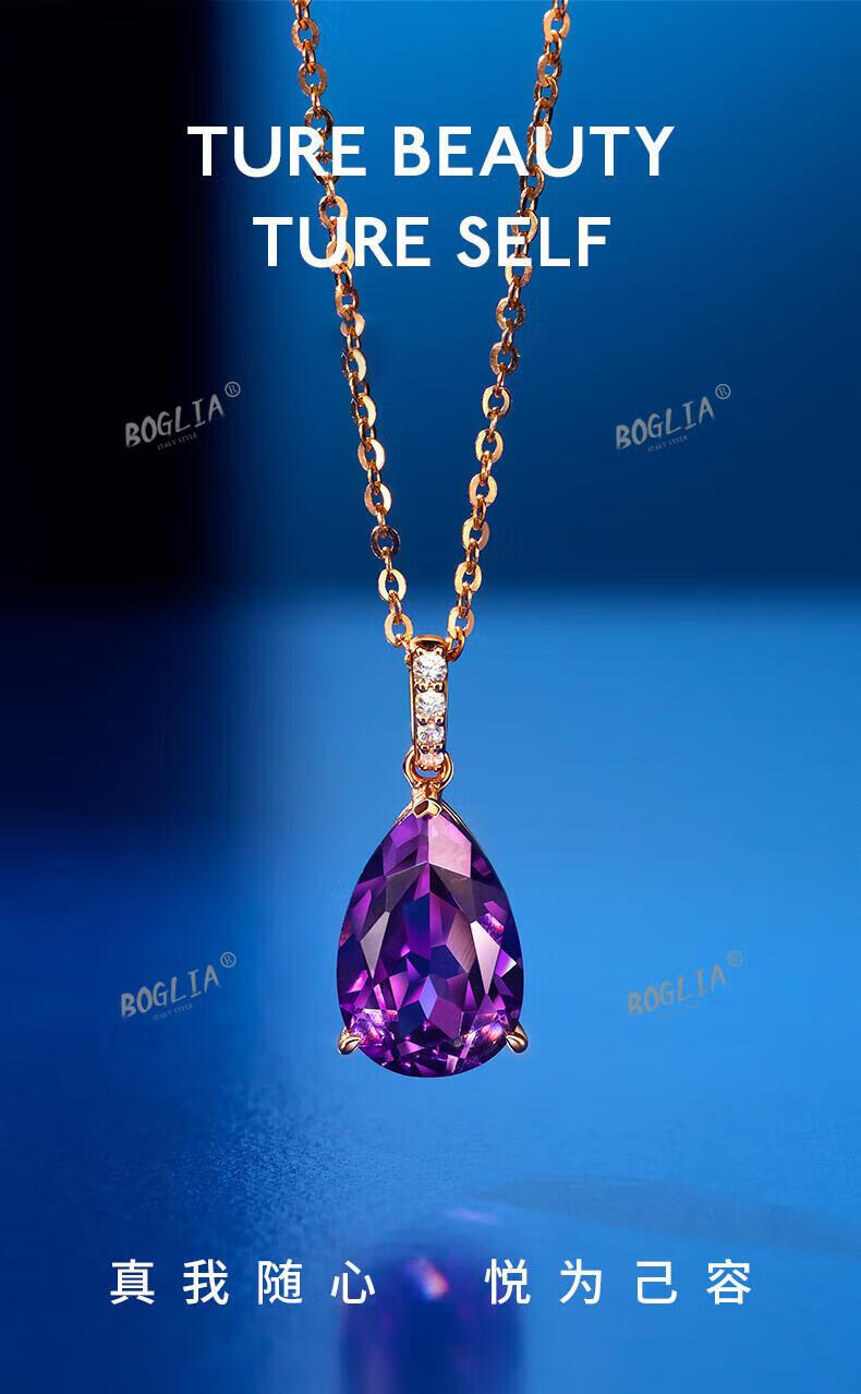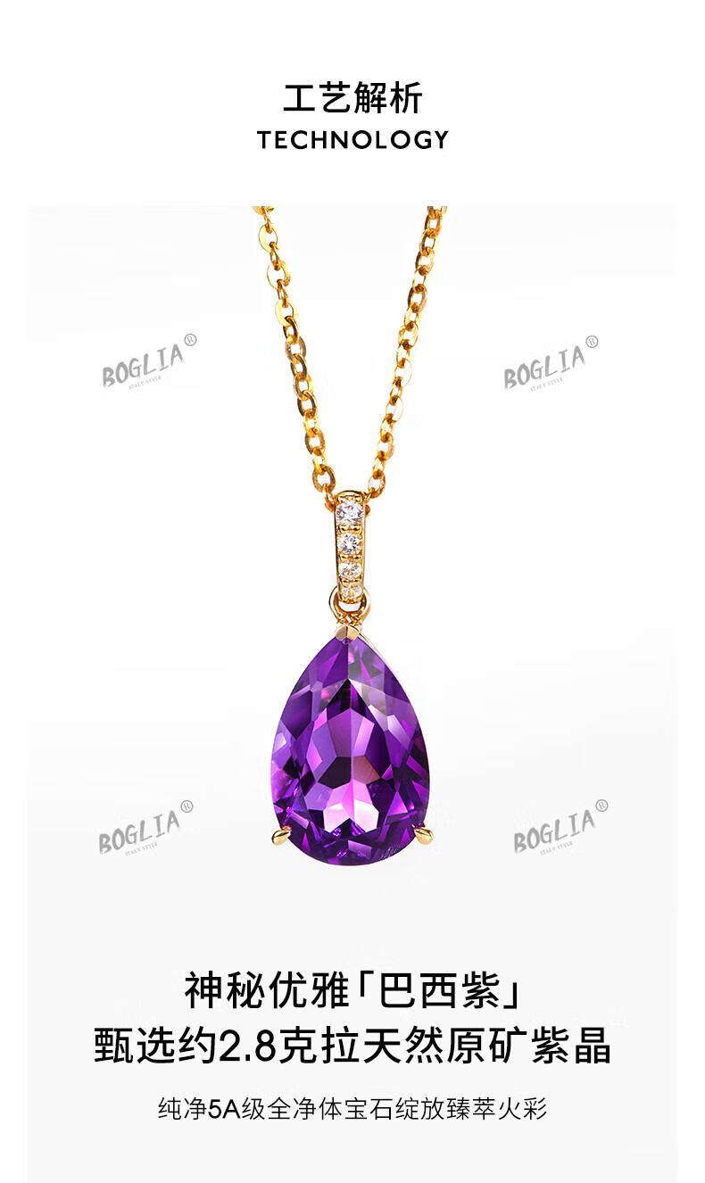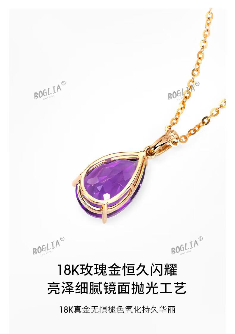 BOGLIA amethyst necklace for women 18k gold amethyst gemstone pendant luxury fashionable birthday gift for girlfriend and wife 2.8 carat amethyst pendant + 18k gold chain