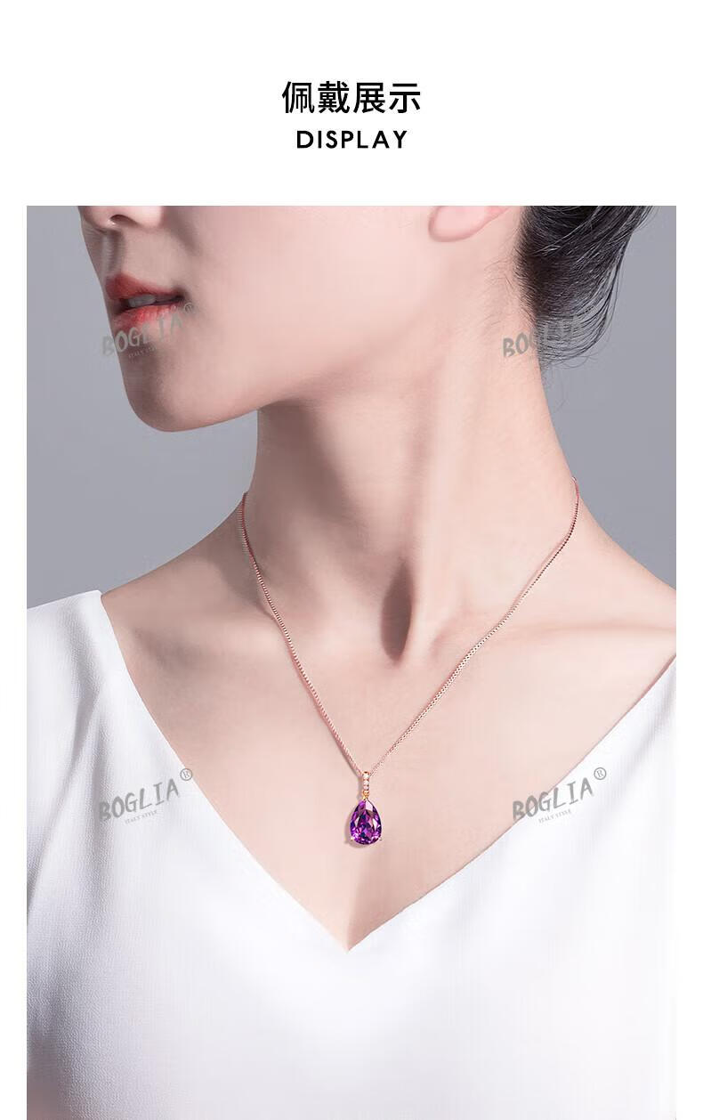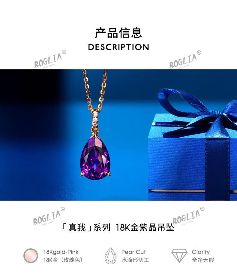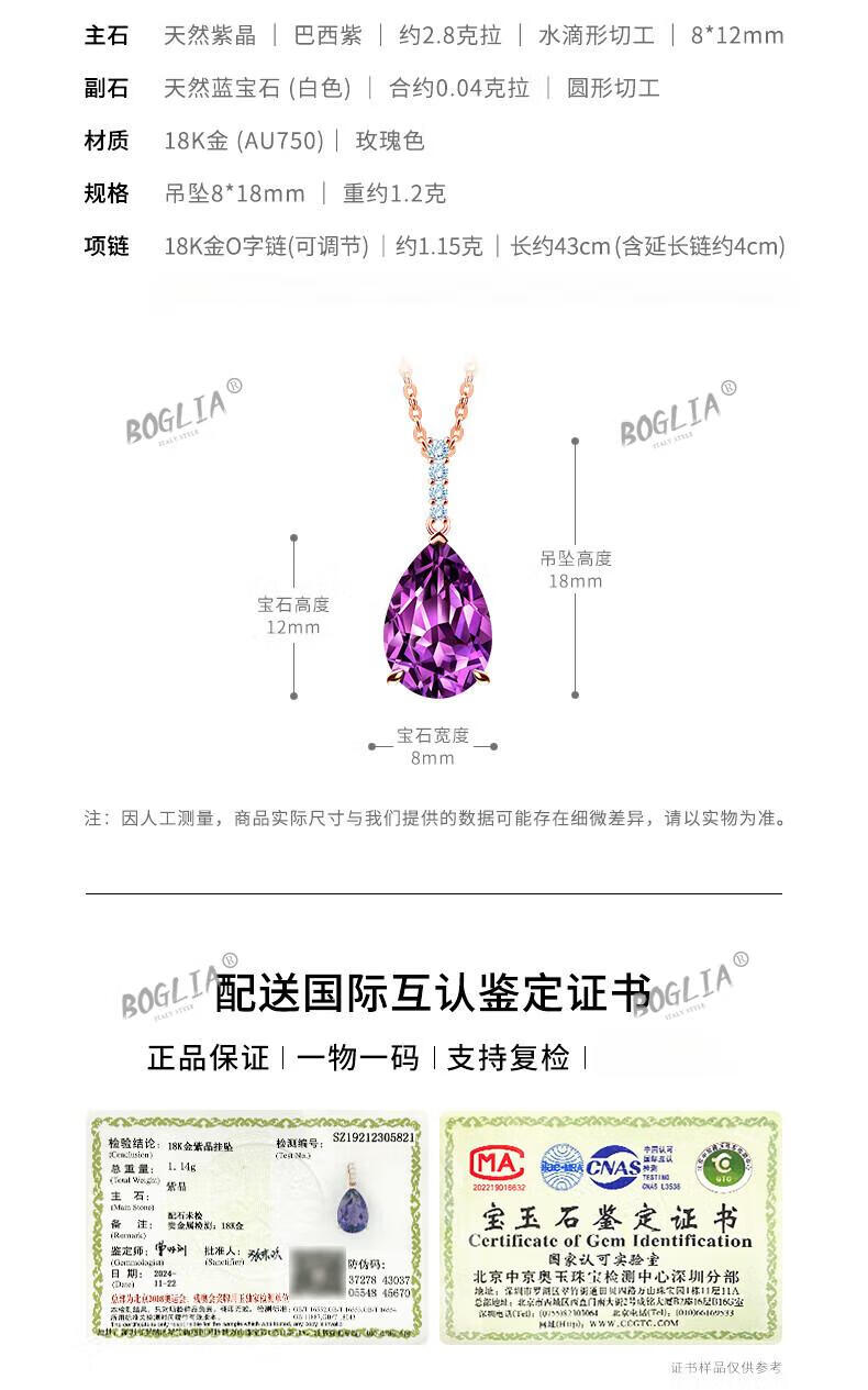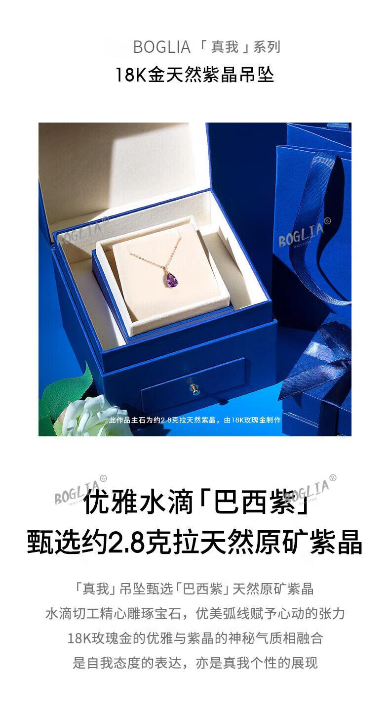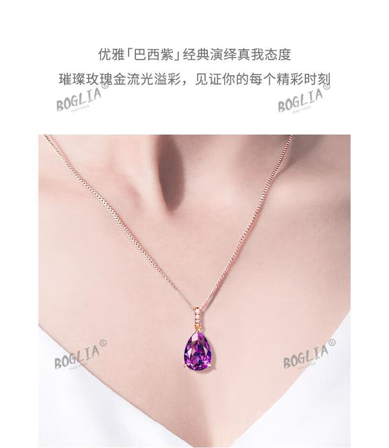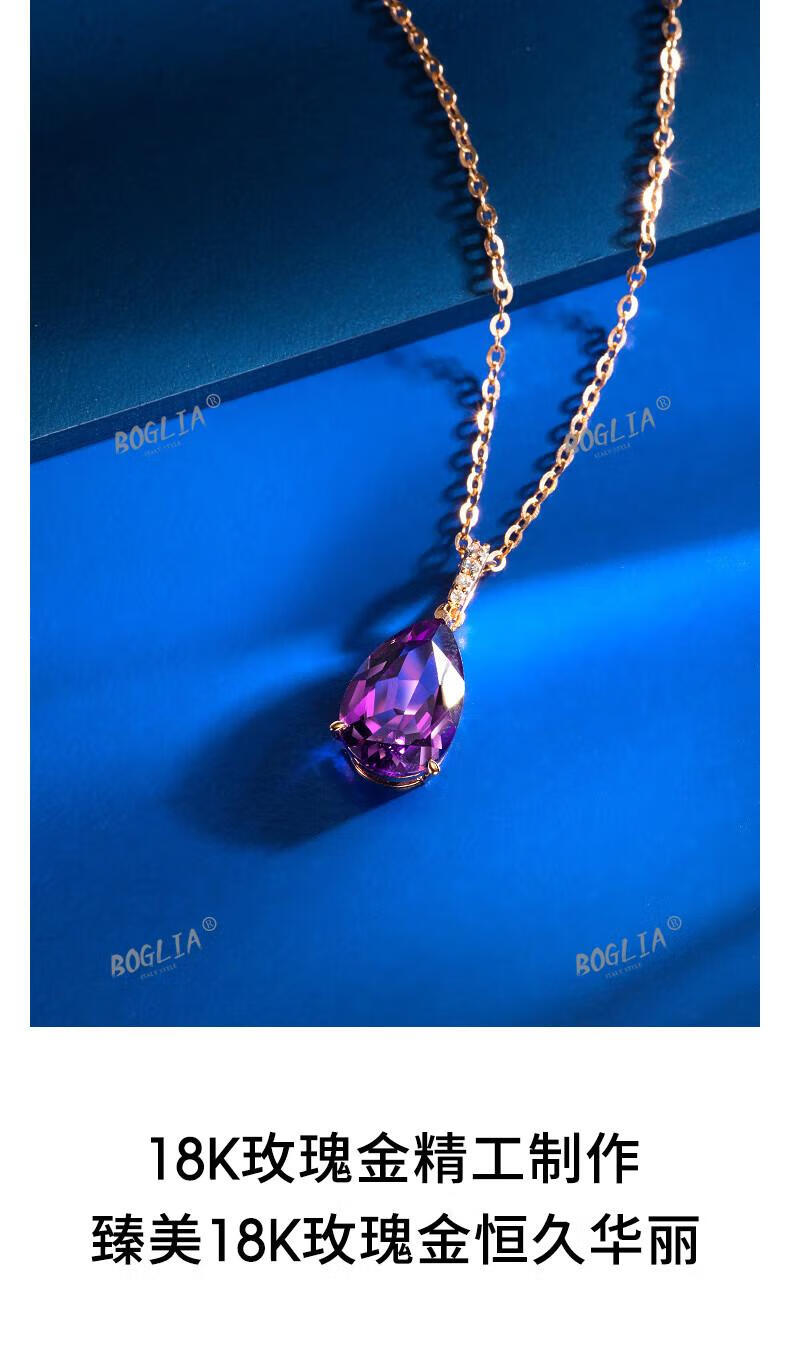 BOGLIA amethyst necklace for women 18k gold amethyst gemstone pendant luxury fashionable birthday gift for girlfriend and wife 2.8 carat amethyst pendant + 18k gold chain