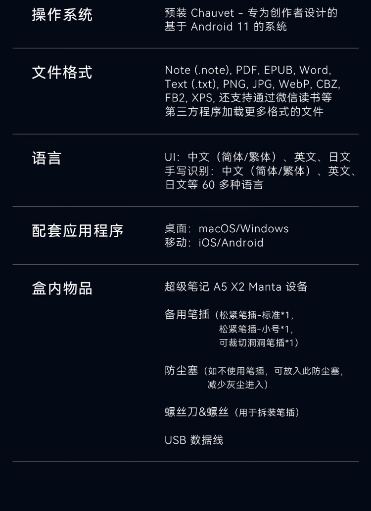 Super note Supernote A5X2 Manta ink screen handwriting notebook 10.7-inch electronic paper book flexible screen large screen e-book reader Manta + Lingmei transparent pen + half envelope