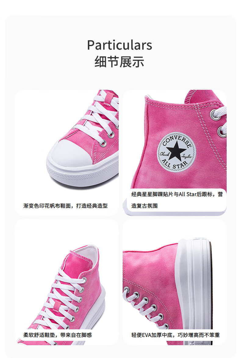Converse Converse children's shoes girls high-top canvas shoes 2025 summer new children's thick-soled casual shoes white/pink 36 recommended foot length 22cm