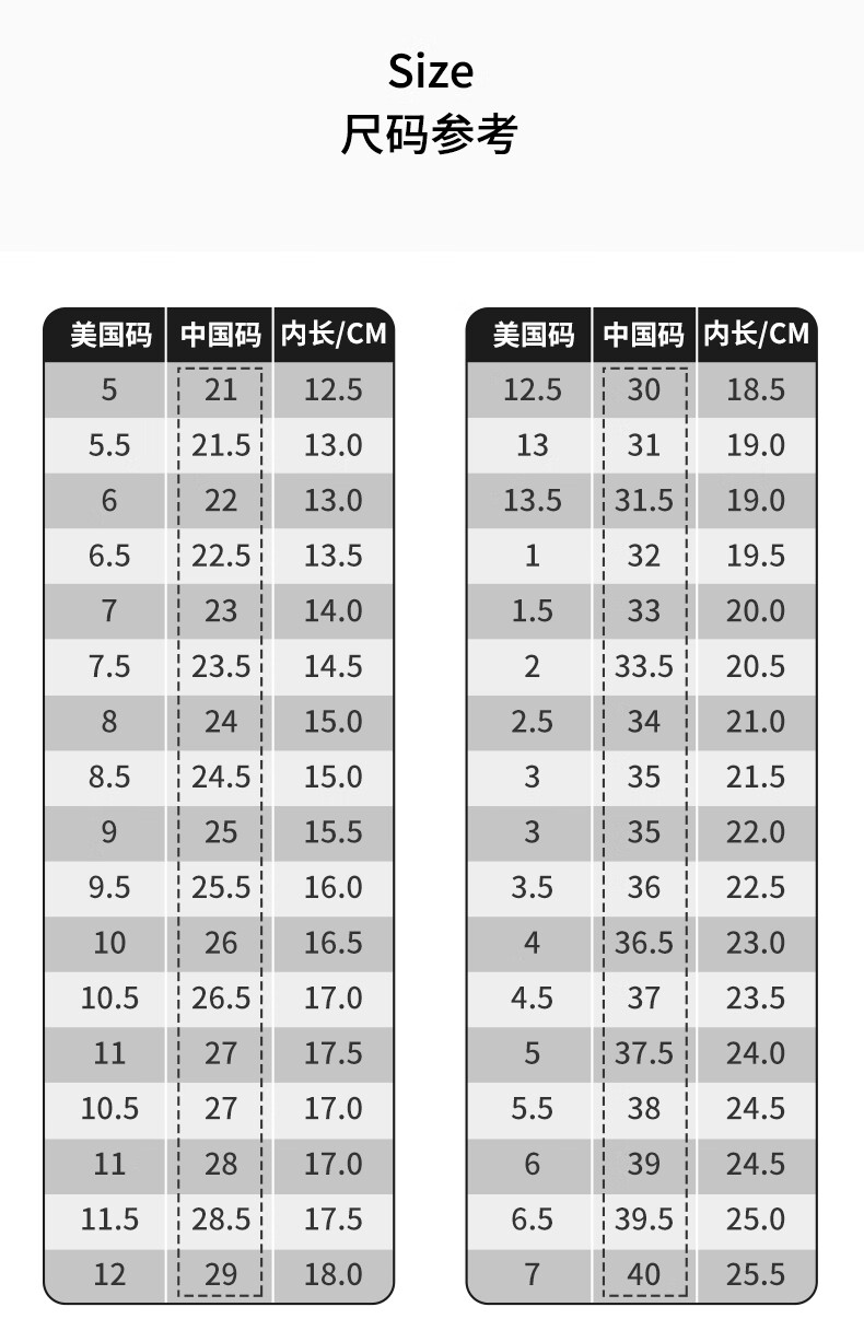 China (cm) 36 - 37 38 - 39 40 - 42 43 - 44 45 - 47