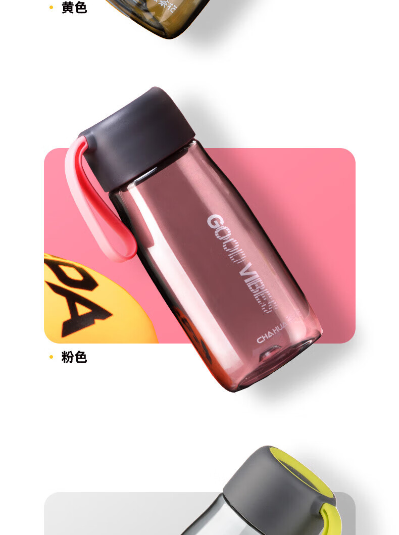 Tea wreath color plastic water cup for men and women, sports portable kettle, simple and fashionable portable rope cup with tea separator, pink rope - 520ml