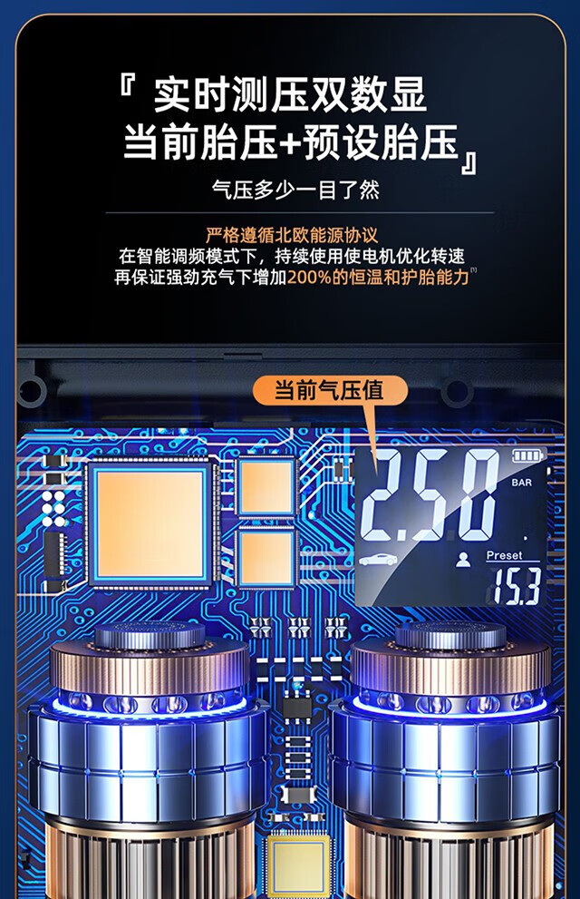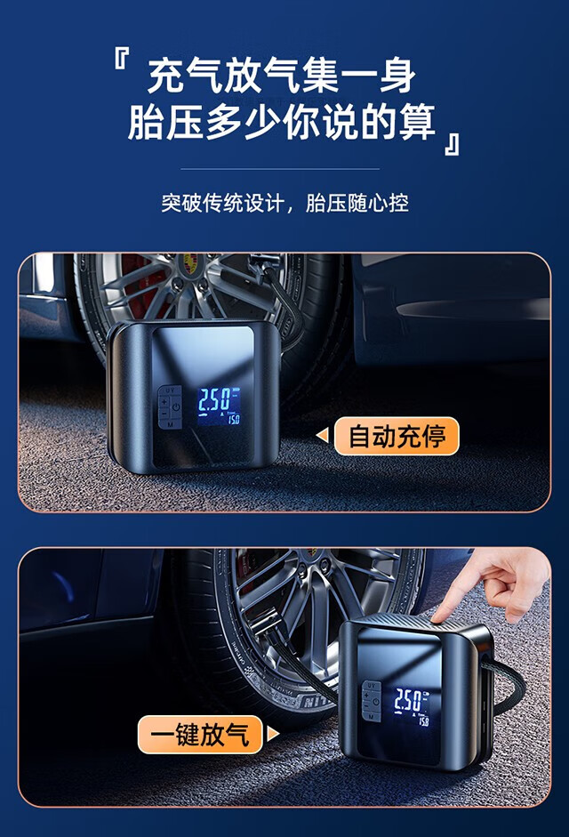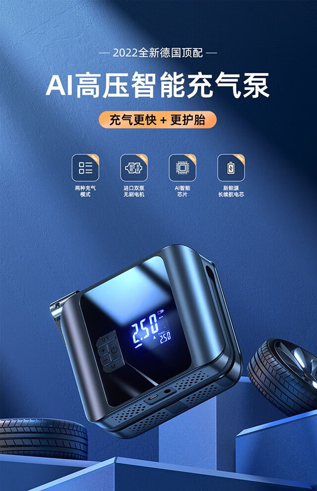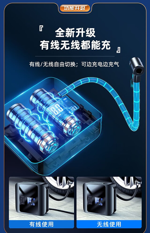 Shantou Lincun Car Wireless Air Pump Portable Car Electric Pump Tire Pressure Automatic Dual-Cylinder High-Pressure Inflator Classic Plug-in Cigarette Lighter Power Supply