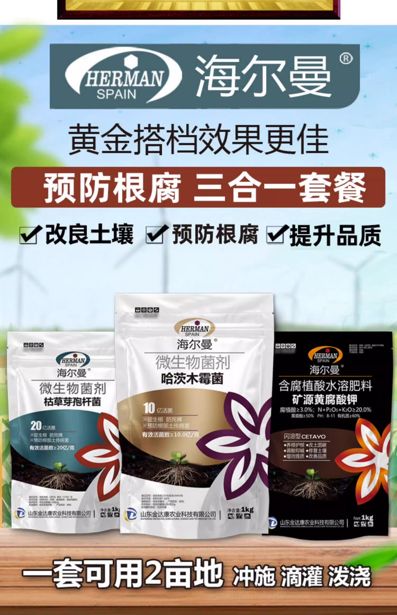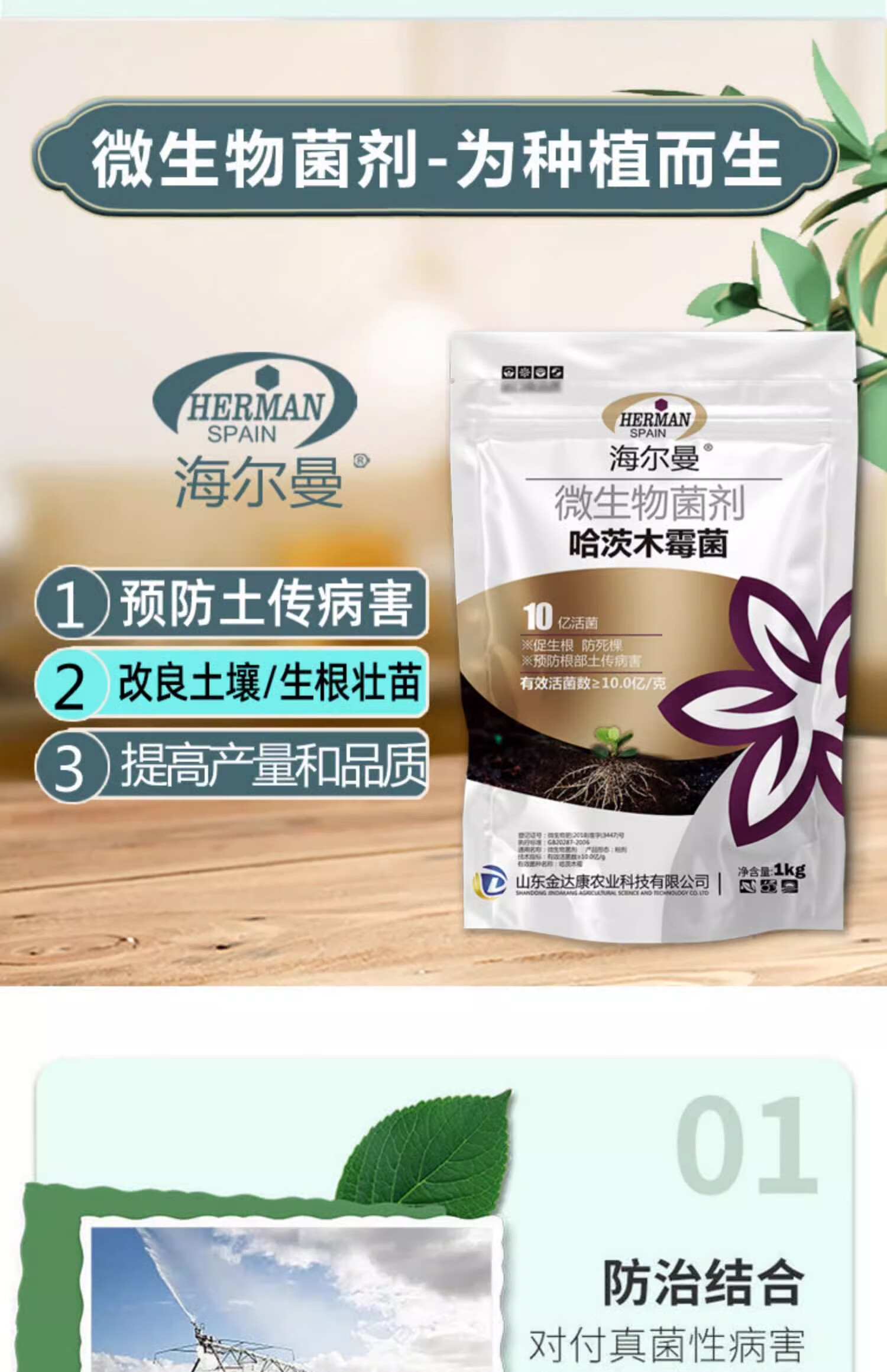 Hellman anti-root rot package Bacillus subtilis Trichoderma harzianum microbial agent agricultural organic fertilizer water-soluble fertilizer Trichoderma harzianum 1000g*5 bags