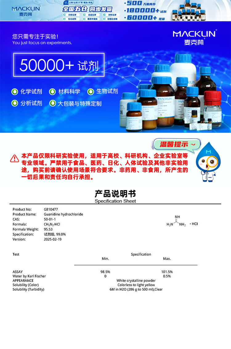 Macklin Guanidine Hydrochloride CAS 50-01-1 G810477-25kg