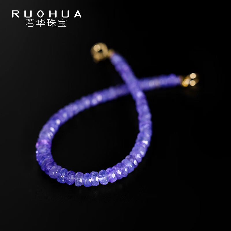 Puli Jewelry Bauhinia Tanzanite Bracelet Women's 18K Gold Gemstone Bracelet Colorful Beads Hand Jewelry Gift 3-4mm/Tanzania/18K Gold Bracelet (Pre-sale 10 days) 18cm