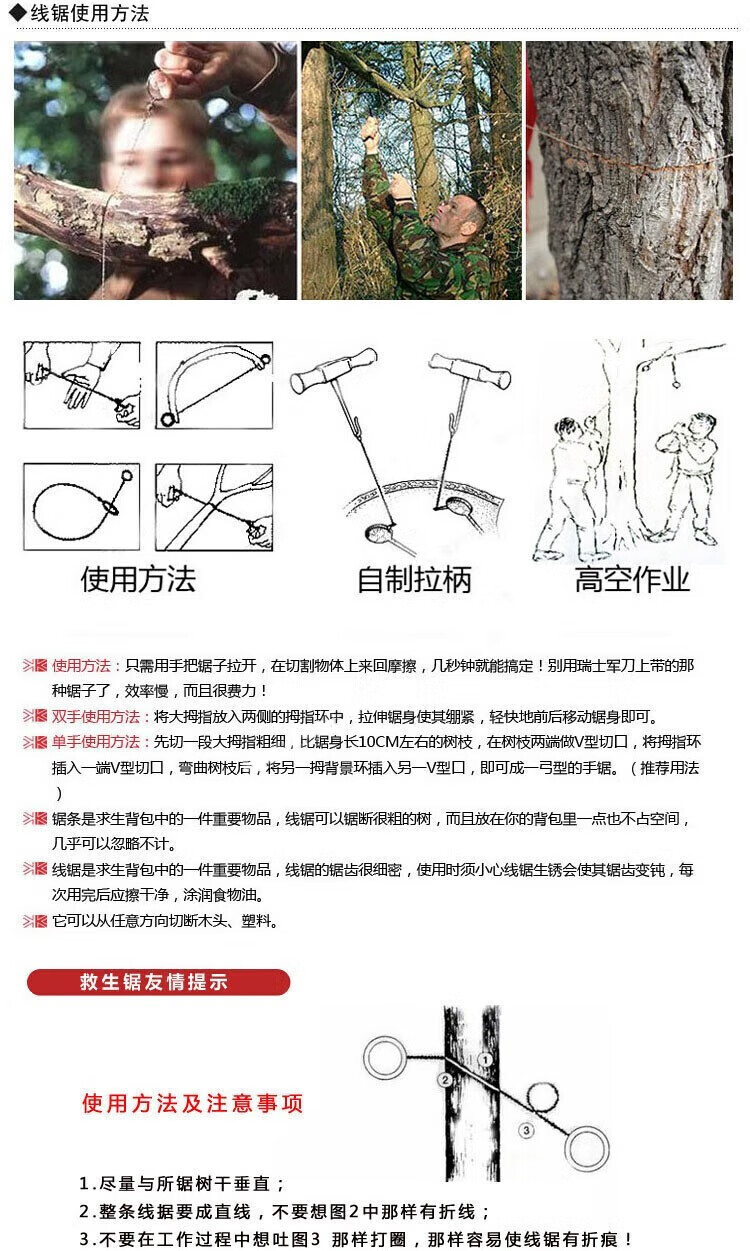 Xiwen hand-pulled wire saw pvc pipe saw wire saw wire saw woodworking small hand-held wire saw tree sawing tool two-finger wire saw can cut PVC/PE pipe 55cm