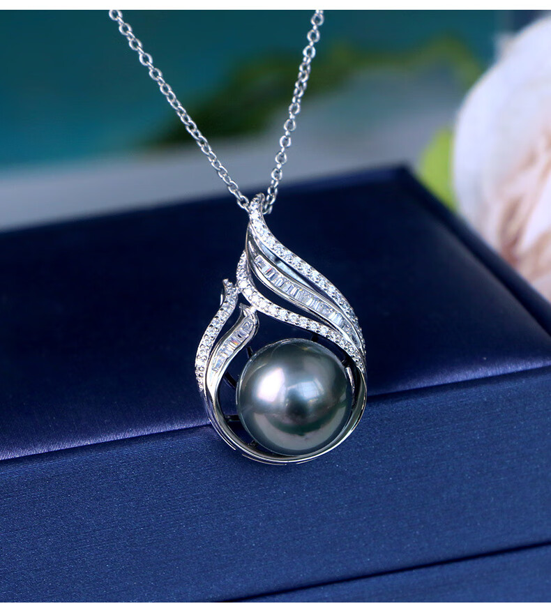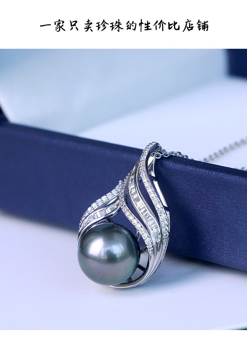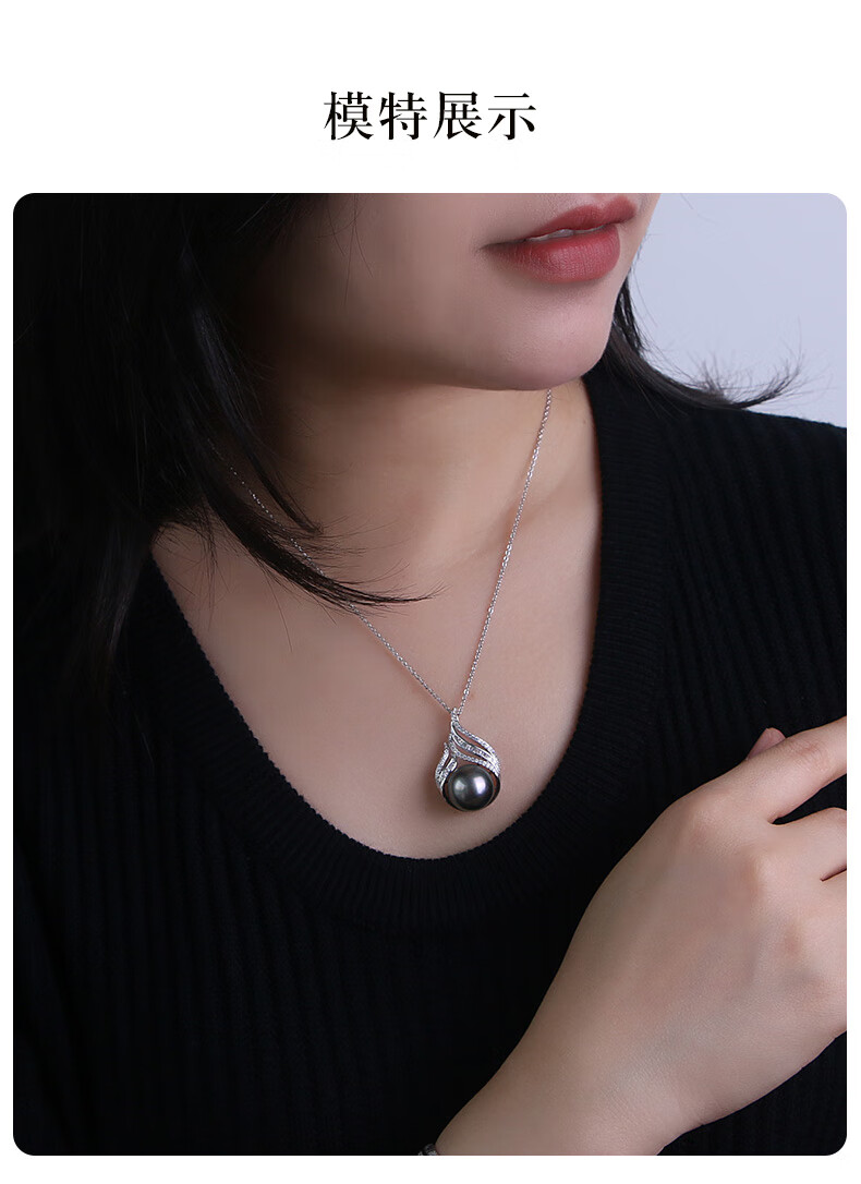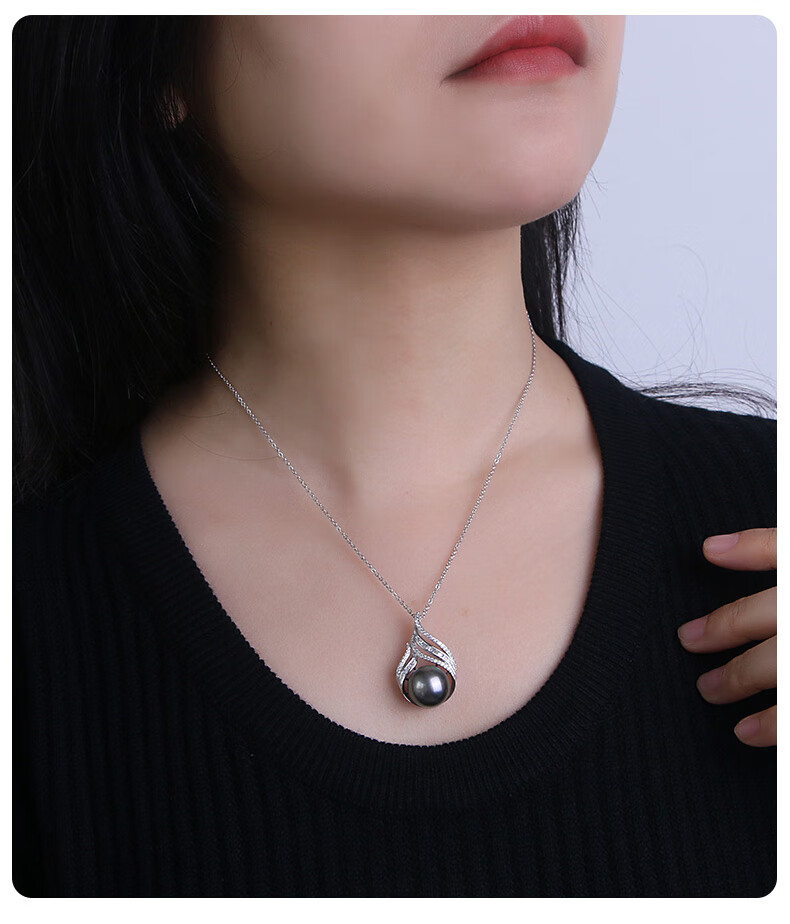 Zhenrun Jewelry Tahitian Black Pearl Pendant S925 Silver Seawater Pearl Clavicle Chain Single Pearl Pendant 12-13mm Free Silver Chain