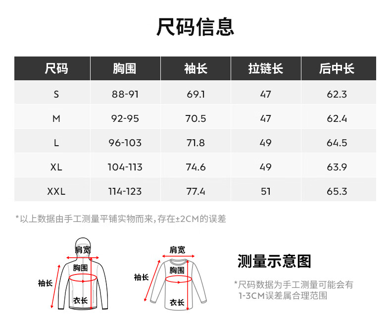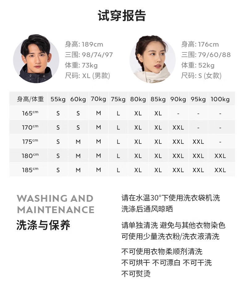 China (cm) 165 / 88-90 170 / 96-98 175 / 108-110 180 / 118-122 185 / 126-130