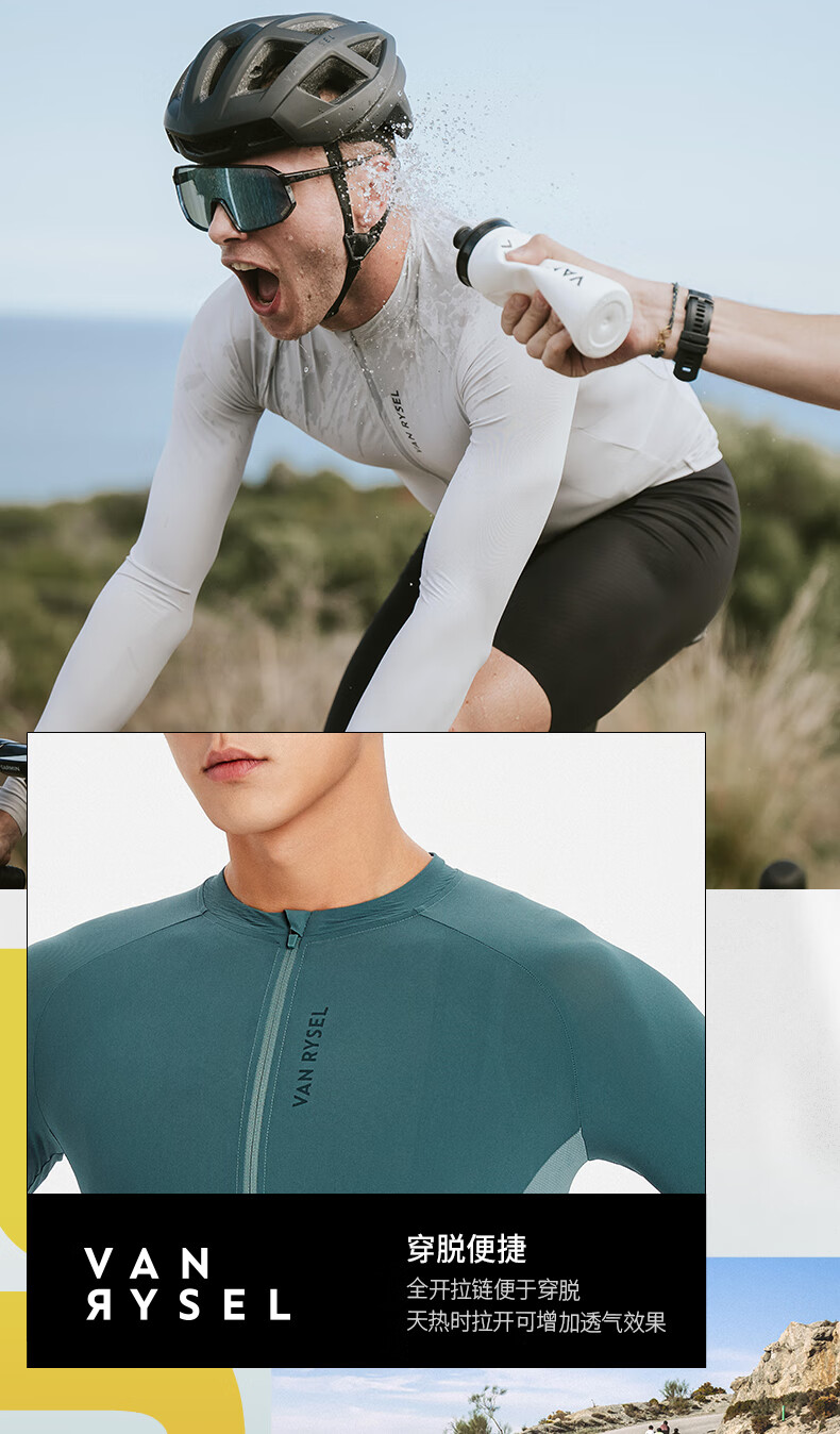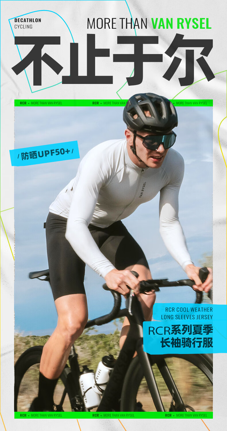 Decathlon long-sleeved cycling jersey for men and women, summer road cycling jersey, sweatshirt, new RCR long-sleeved cycling jersey, light gray M