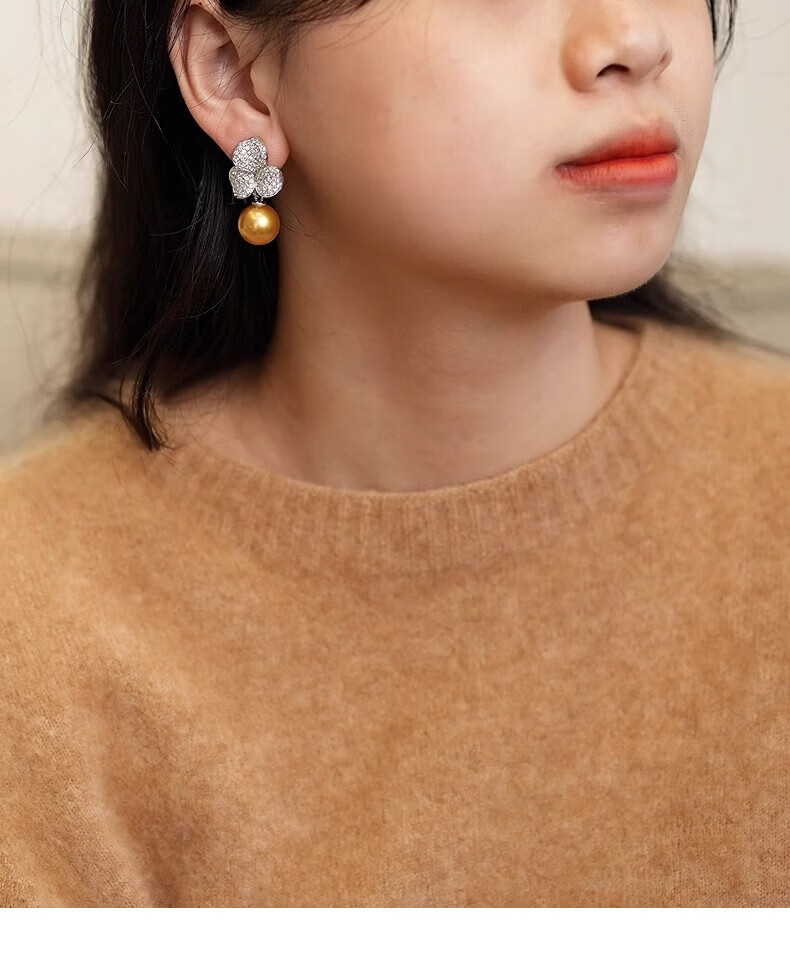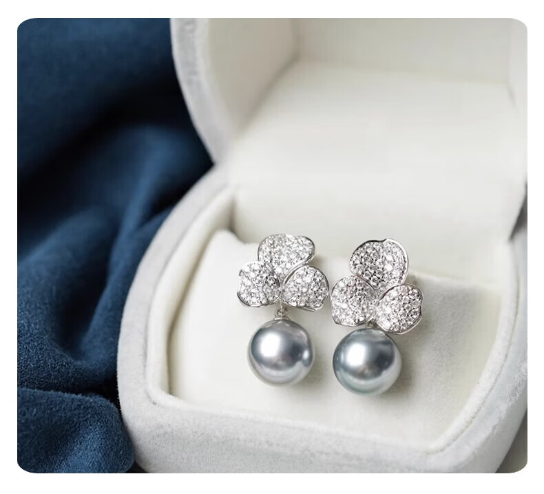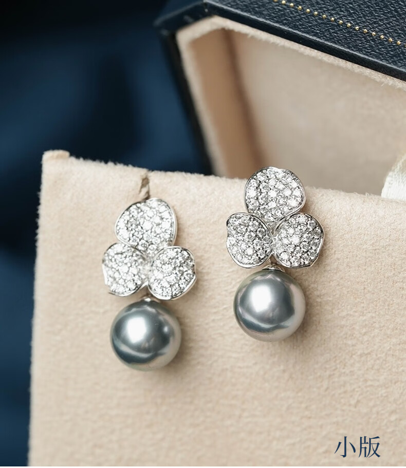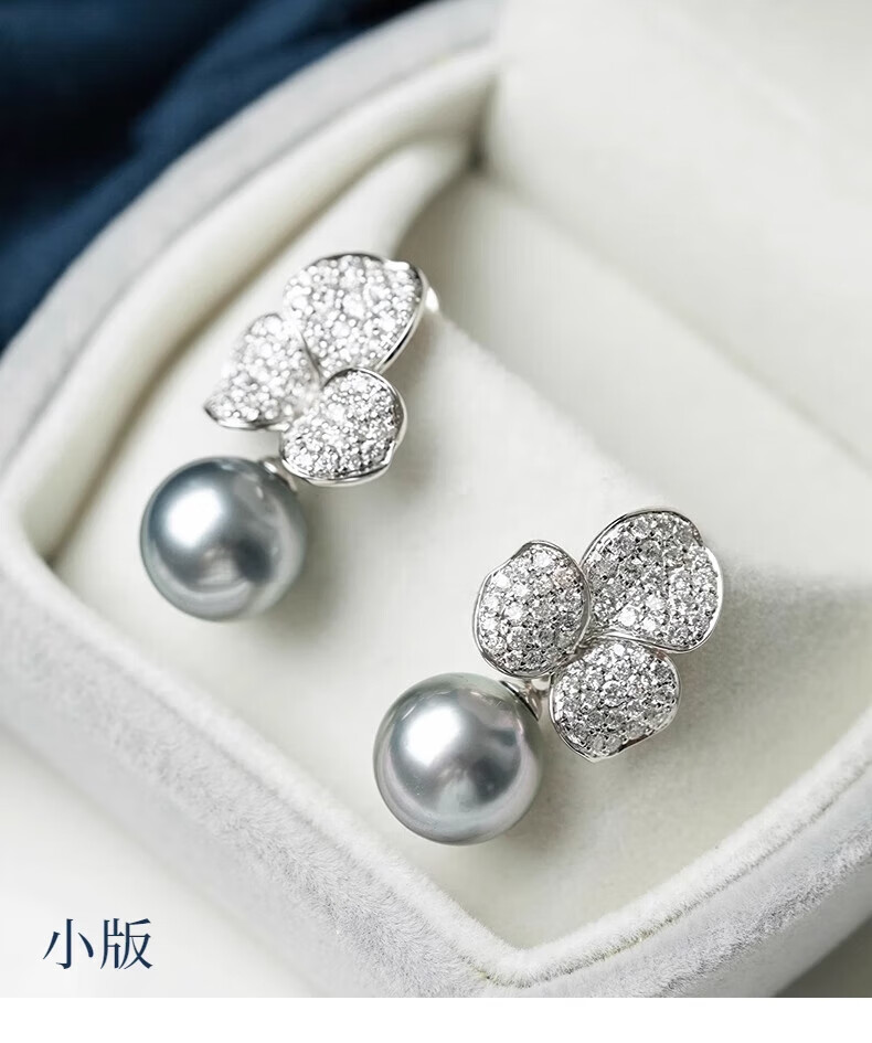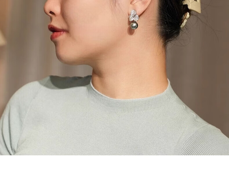 2025 New Pearl Earrings Gift Niche Versatile Earrings Platinum Gray Natural Seawater Platinum Gray Pearls 14mm