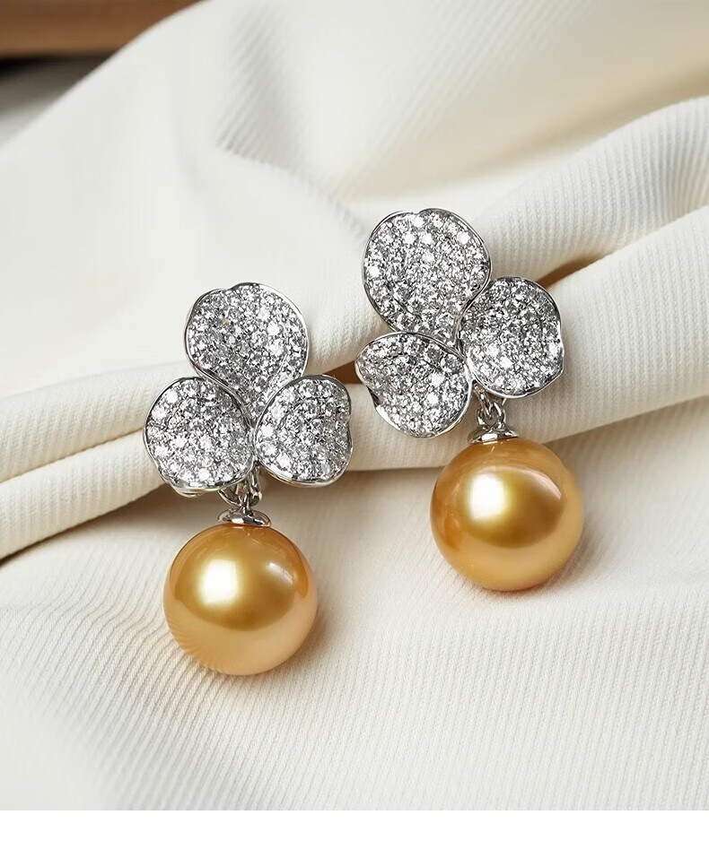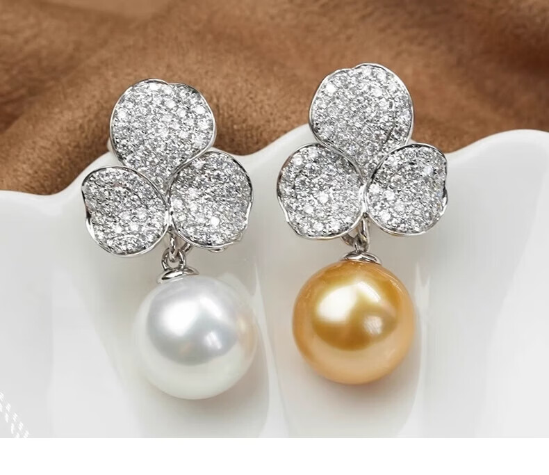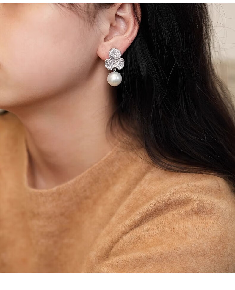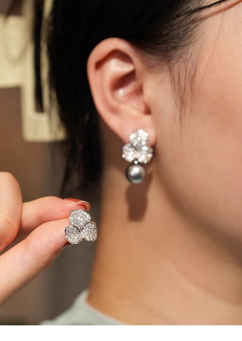 2025 New Pearl Earrings Gift Niche Versatile Earrings Platinum Gray Natural Seawater Platinum Gray Pearls 14mm