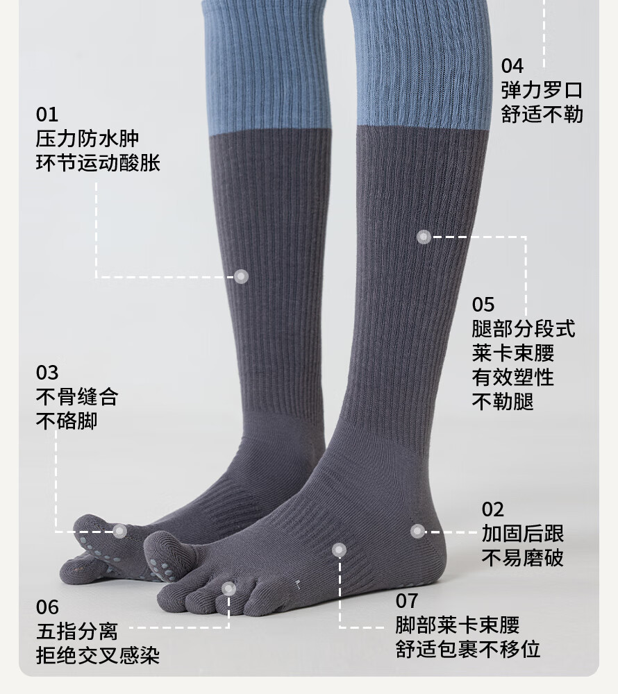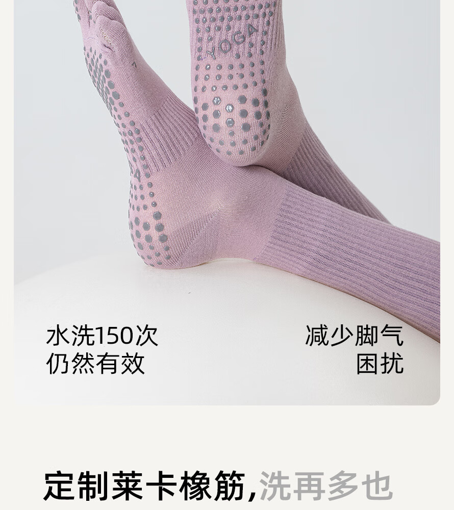 Long-tube yoga socks for women, boneless pressure cycling calf socks, aerobics, fitness, Pilates, professional non-slip sports socks, purple + gray + black, 3 pairs