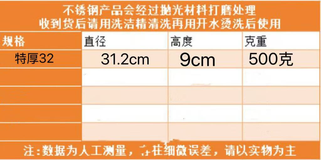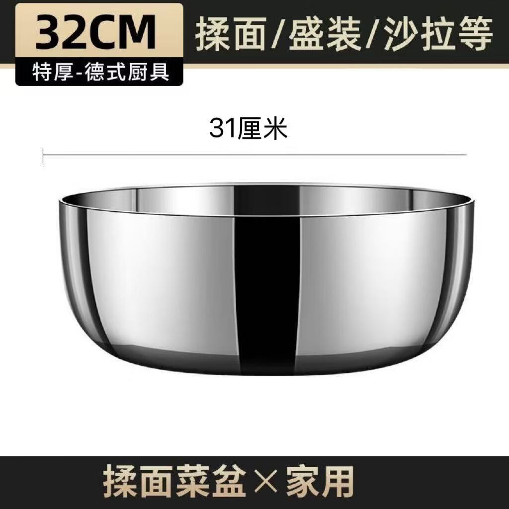Kitchen baking extra thick stainless steel and basin kitchen household hot pot basin washing vegetables and egg soup pot thickened stainless steel and basin 32cm