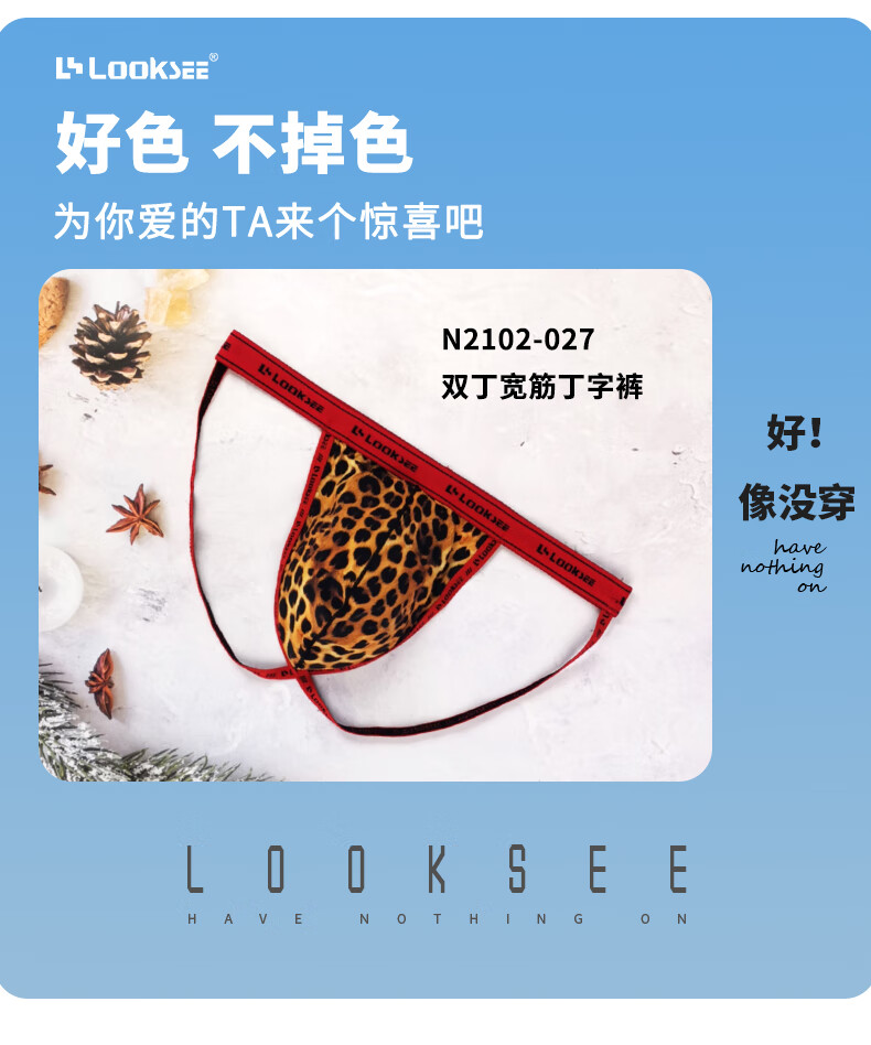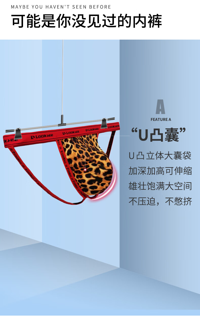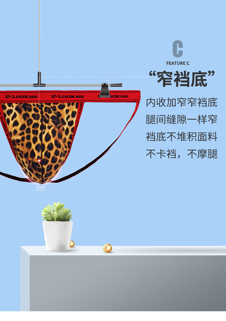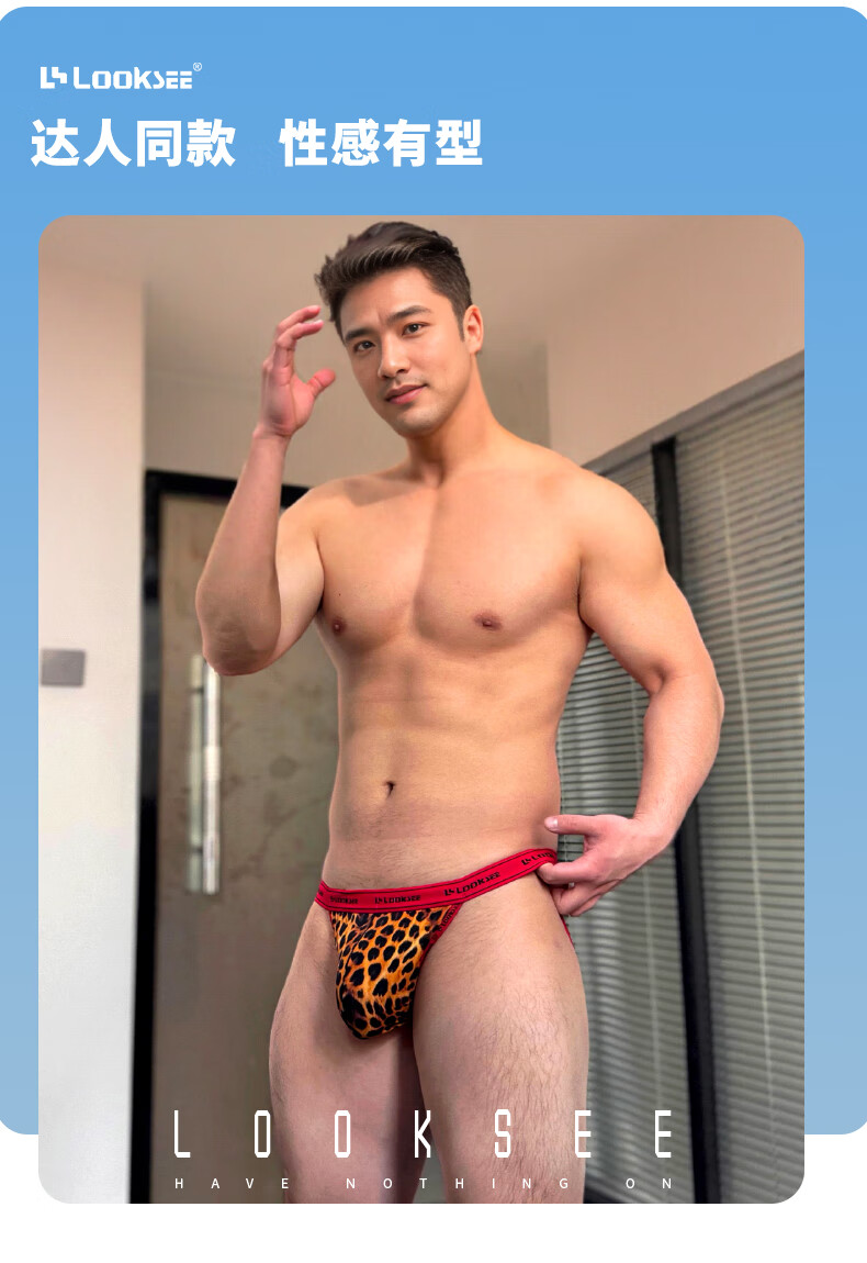 Lu Ke leopard print ultra-thin ice silk low-waist hip double thong men's underwear printed U protruding sexy double thong T pants leopard print double thong N2102-027 1 piece L